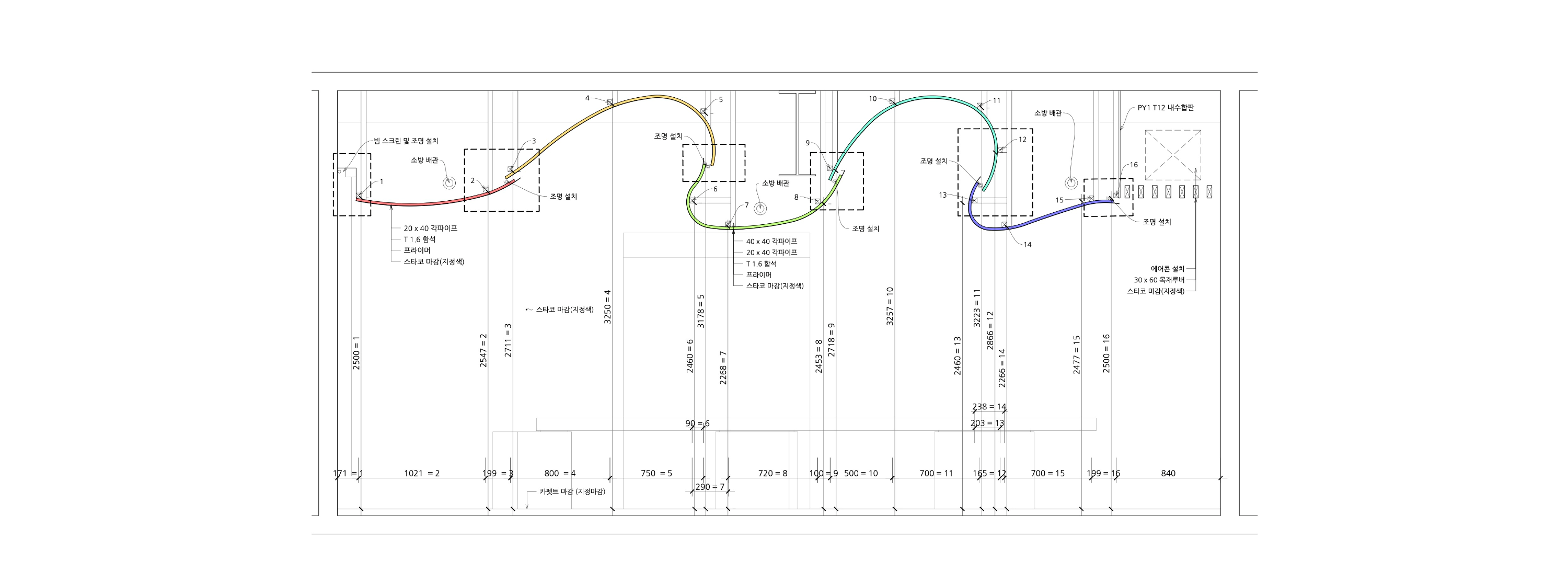 Folding Space는 경남 창원시에 위치한 사무 공간으로, 현대적인 건축 언어를 통해 실용성과 미적 감각을 조화롭게 구현한 작업이다. 특히, 천장 디자인은 접히고 열리는 형상을 연상시키며, 빛과 그림자가 만들어내는 역동적인 시각적 효과를 통해 공간에 생동감을 불어넣었다. 이는 설계 과정에서 기능적 제약을 창의적으로 해결한 결과로, 스프링클러 배관을 피하고 층고를 최대한 확보하는 동시에 파도의 거친 형상을 모티브로 삼아 독창적인 디자인을 완성하였다.