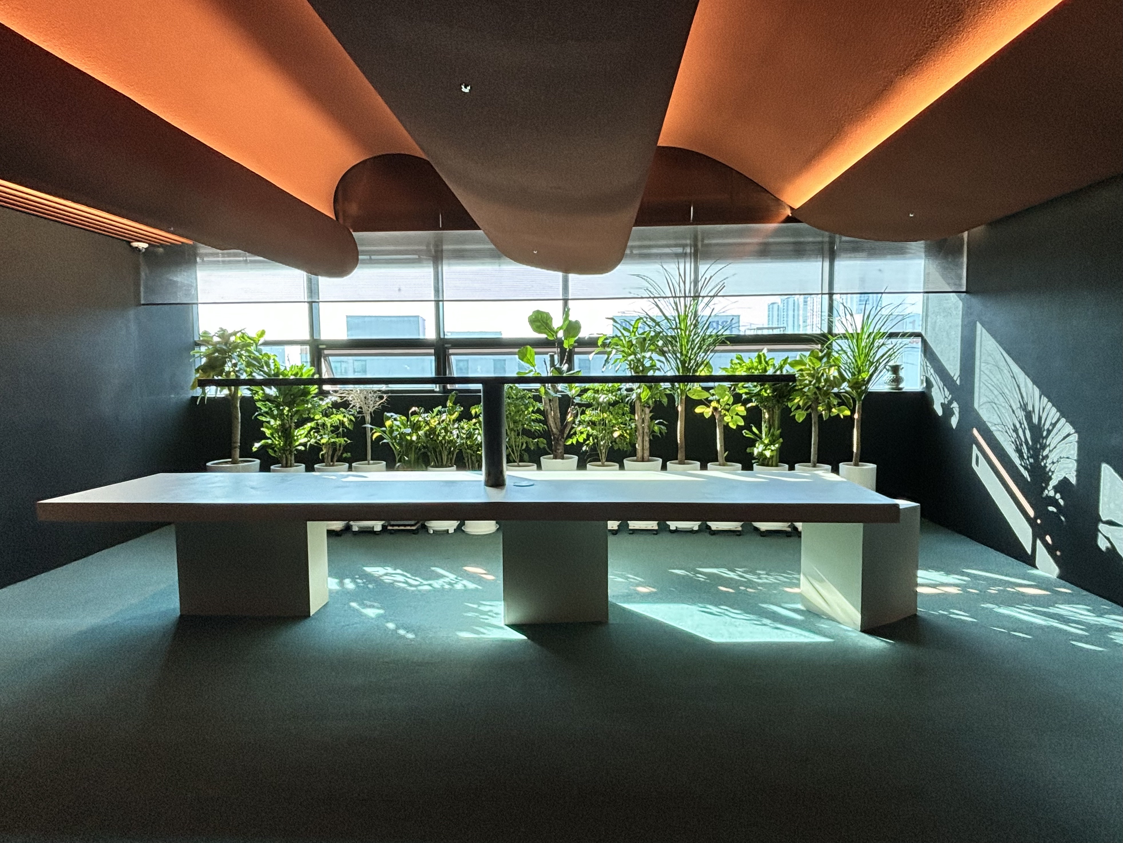 천장에 드리운 곡선은 이 프로젝트의 하이라이트 중 하나다. 직선적이고 기능 위주의 사무실 디자인에서 벗어나, 곡선의 유기적인 형태는 공간에 생명력을 부여하며, 시각적 따뜻함과 역동성을 동시에 제공한다. 그리고 공간 곳곳에 배치된 식물은 단순한 장식의 기능을 넘어서, 인간과 자연이 연결되는 매개체로서 작용하여 사무실이라는 딱딱한 환경 속에서 사용자들에게 생명력을 불어넣으며, 하루의 업무를 보다 창의적이고 활력 있게 만들어준다. 특히, 자연광이 식물과 조화를 이루며 만들어내는 그림자는 이 공간을 한층 더 생동감 있게 한다.