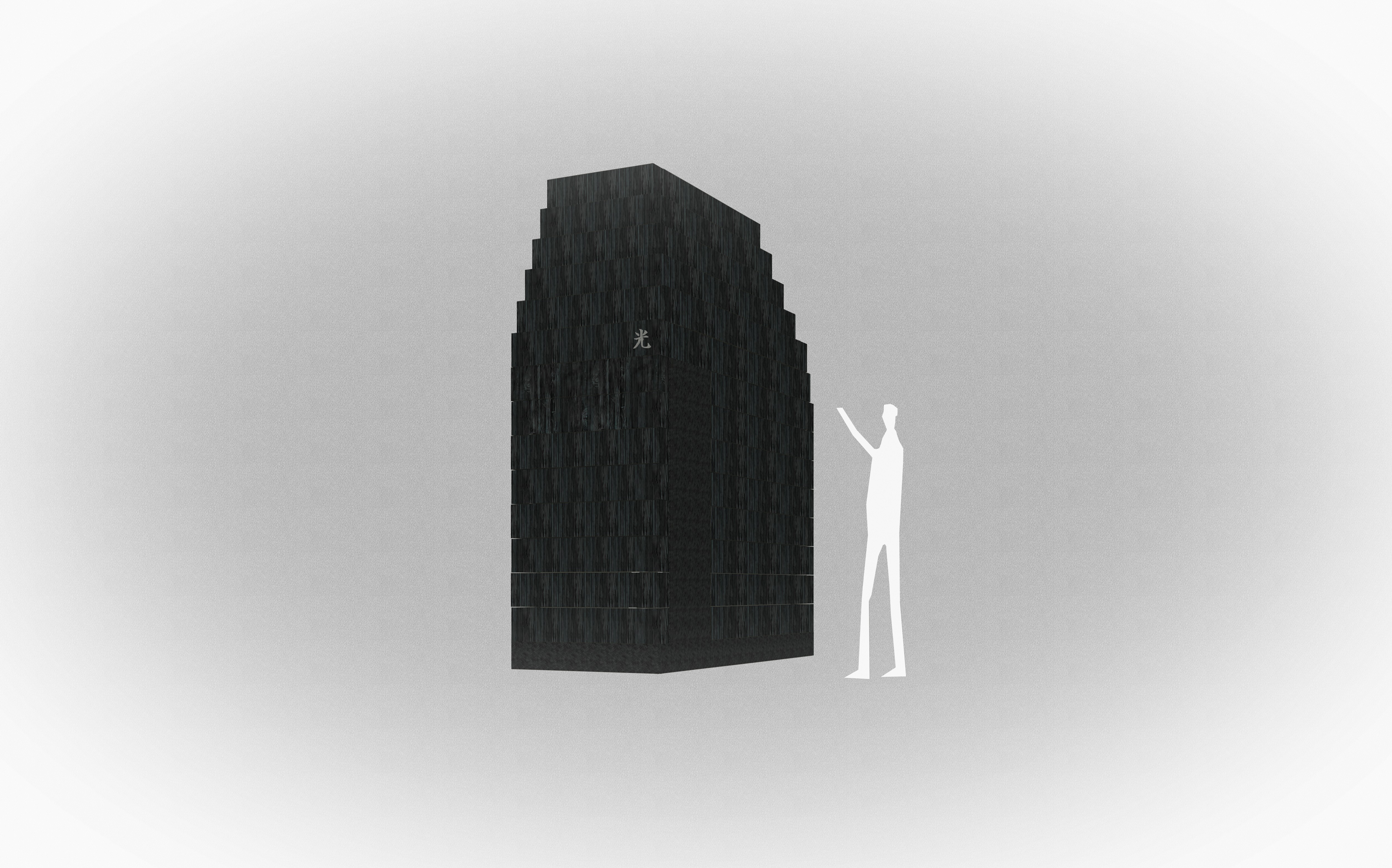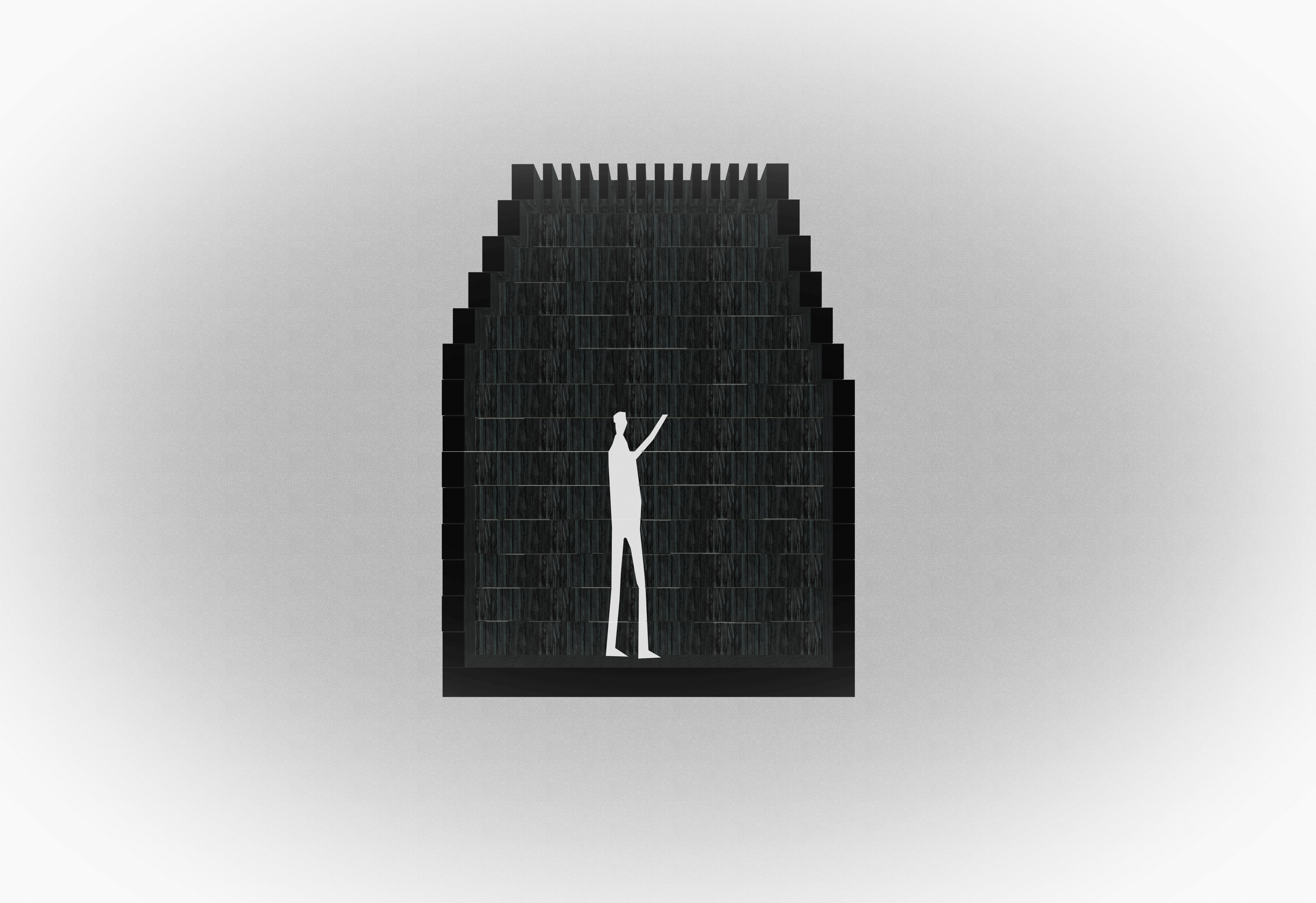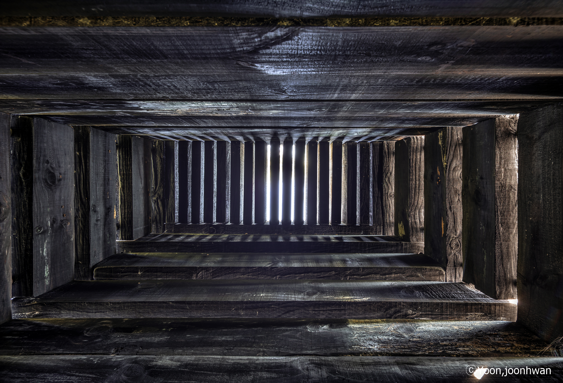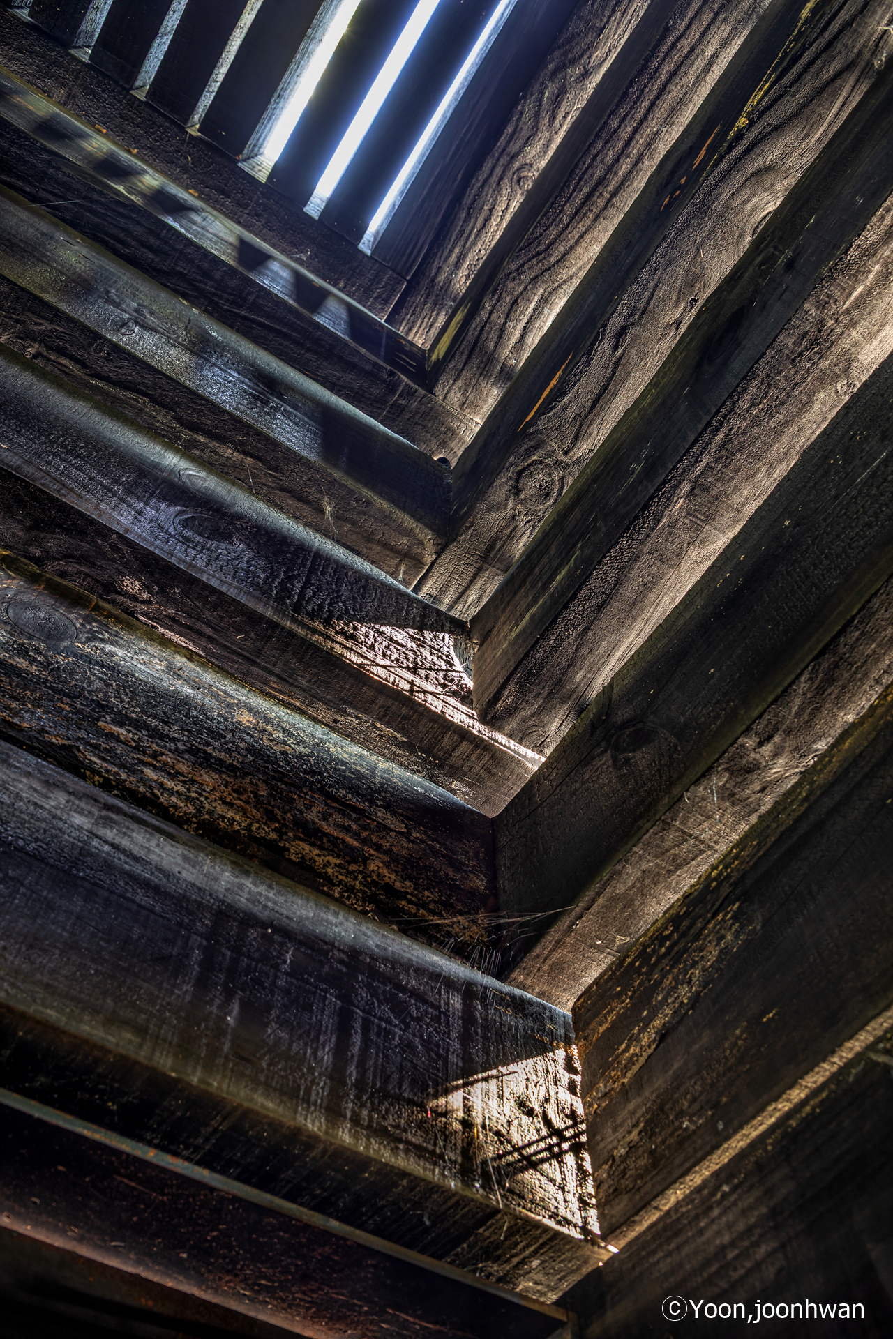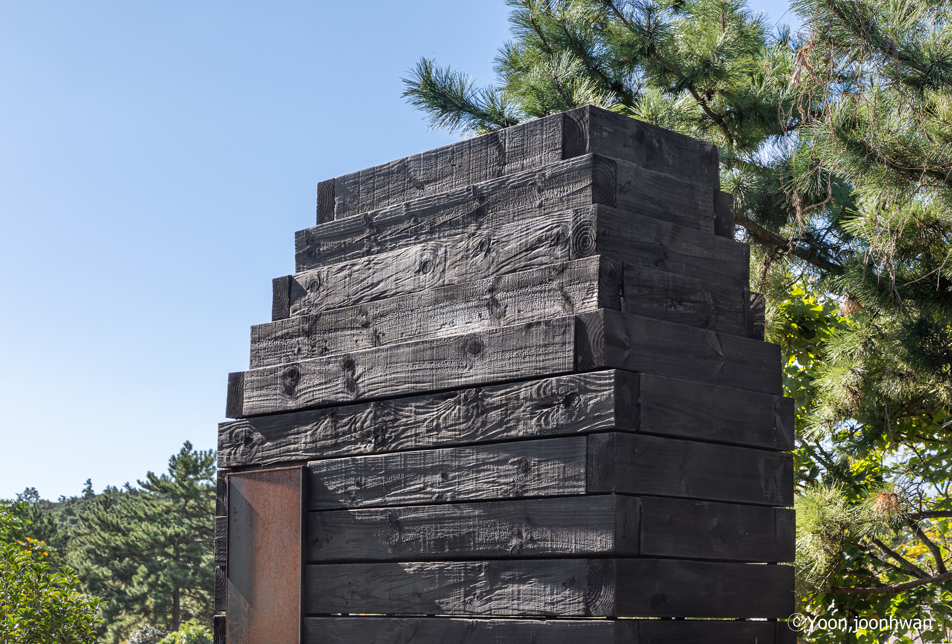 뮤지엄의 검고 투박한 나무 덩어리는 닫힌 형태로 외부를 향하지만, 그 폐쇄성은 오히려 내부로의 접근을 유도한다. 외부에서의 조형적 긴장과 내부에서의 감각적 개방은 이 작은 구조물의 이중적 성격을 예고한다. 뮤지엄의 구조는 240mm x 150mm 크기의 전나무 블록을 일정한 간격으로 적층하여 만들어졌다. 각 목재 블록은 동시에 구조체이자, 빛을 받아들이는 매개체로 작동한다.