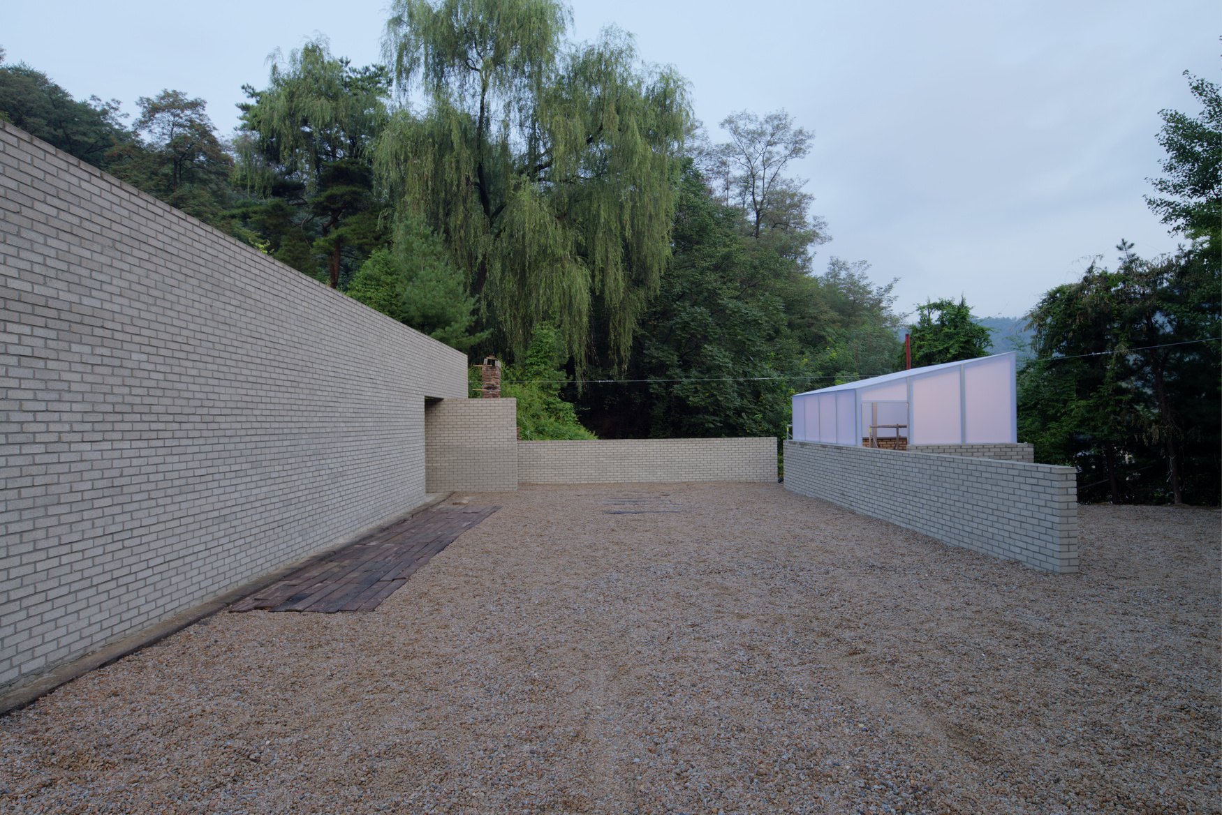 The second and third exhibition rooms of Seongbuk Dowon were re-built in the location, where a deserted house was. But the new materials and walls made them have refined atmospheres. We extended the spaces as much as the area that had the eaves and blocked the windows after removing the concrete box and then installed the eaves again. We also planned an outdoor exhibition hall by applying new techniques and construction methods after demolishing the wooden-structured shed, where was no better than a haunted house. We created a new atmosphere in a simple way to extend the space and establish the territoriality, only via the walls.