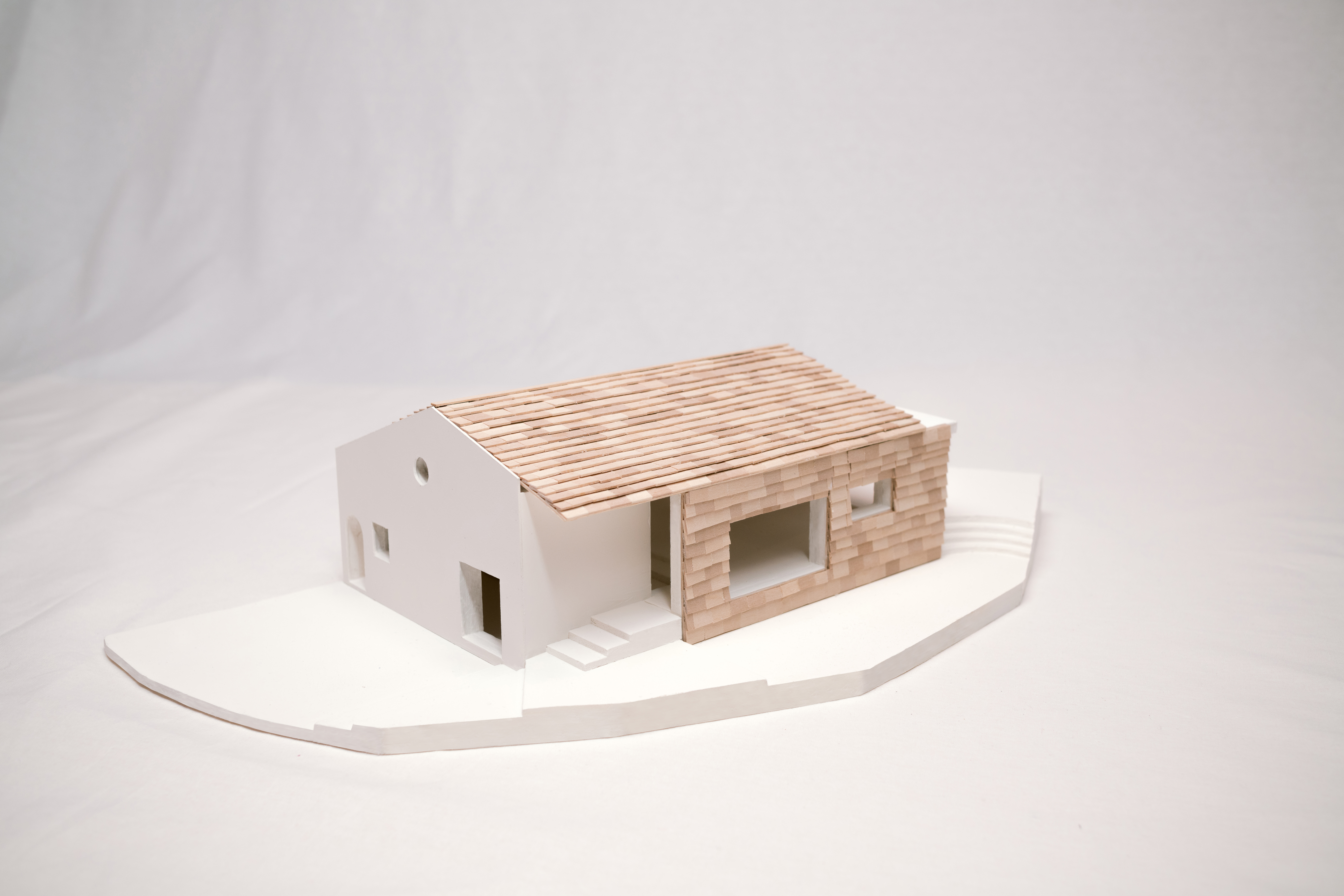 두번째는 골목길을 들어서는 원경에서 보이는 정면을 새로운 재료인 시다쉐이크(적삼목)로 계획했다. 언덕에 위치했기에 석축으로 만들어진 기단과 그위에 벽돌 난간은 이 집을 향하는 길에 멀리서도 눈에 띄는 모습이다. 파편이 조합되어 자연스럽게 재료의 시간을 축적하듯 새로운 입면의 재료 또한 그러한 방식이어야 했다. 따라서 기존의 재료의 구법에서 착안하여 정면과 지붕을 시다쉐이크로 시공했다.