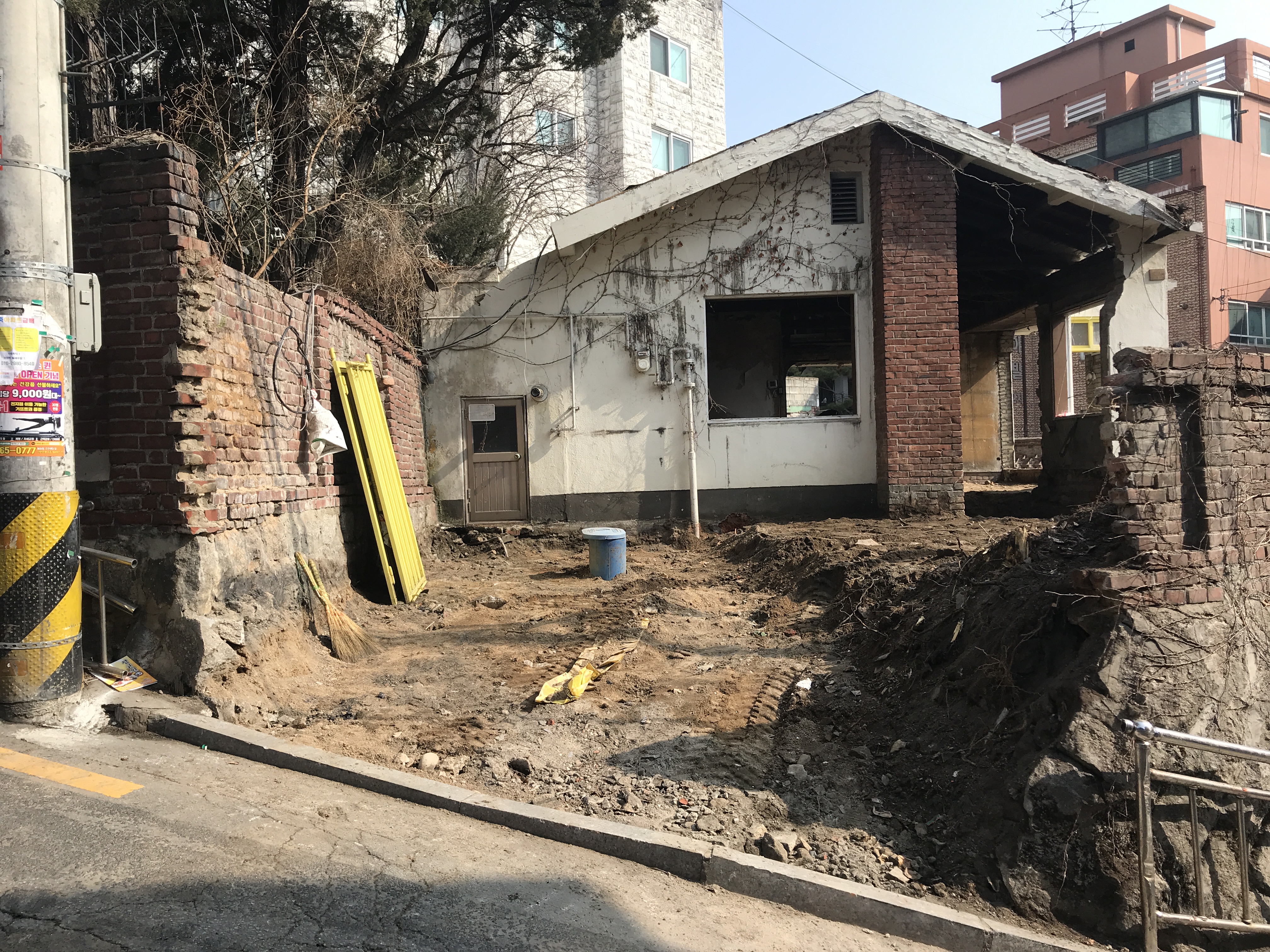 Seongbuk-dong is a village located in the east outside the Fortress Wall of Seoul and designated as a scenic area back when the nation restored independence and many cottages were built all over the area. This remodeled house also used to be used as a cottage, so it is located on a hill and back then, there was a Hanok village under this house and the visibility is opened to the point where the east of the Fortress Wall of Seoul on the other side stands out at one view. This house was built in 1960, and the difference in elevation of more than 4m height from the slope was supplemented with stonework to construct the stylobate, and it was a white house with brick rails and masonry. The client had a strong affection for this house and the village in Seongbuk-dong, and was planning to tear it down to build it again. However, the client wanted to build a space to join other village people and make this house and Seongbuk-dong to the public and planned a shared kitchen.