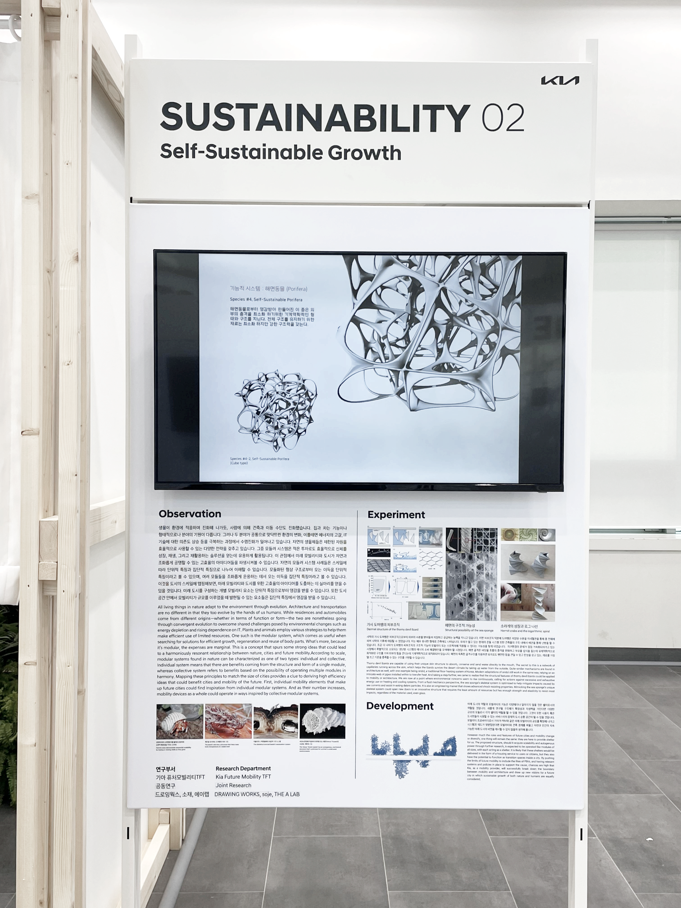 기아 디자인의 중장기적 전략인 Design for Nature를 위한 미래 모빌리티의 친환경적 솔루션으로서 모듈러시스템 컨셉 개발을 목표로 하며, 자연 모사(Bio-mimicry), 모듈러, 지속가능성 등의 키워드를 기반으로 새롭고 다양한 미래 가능성에 대한 컨셉 개발을 위한다.