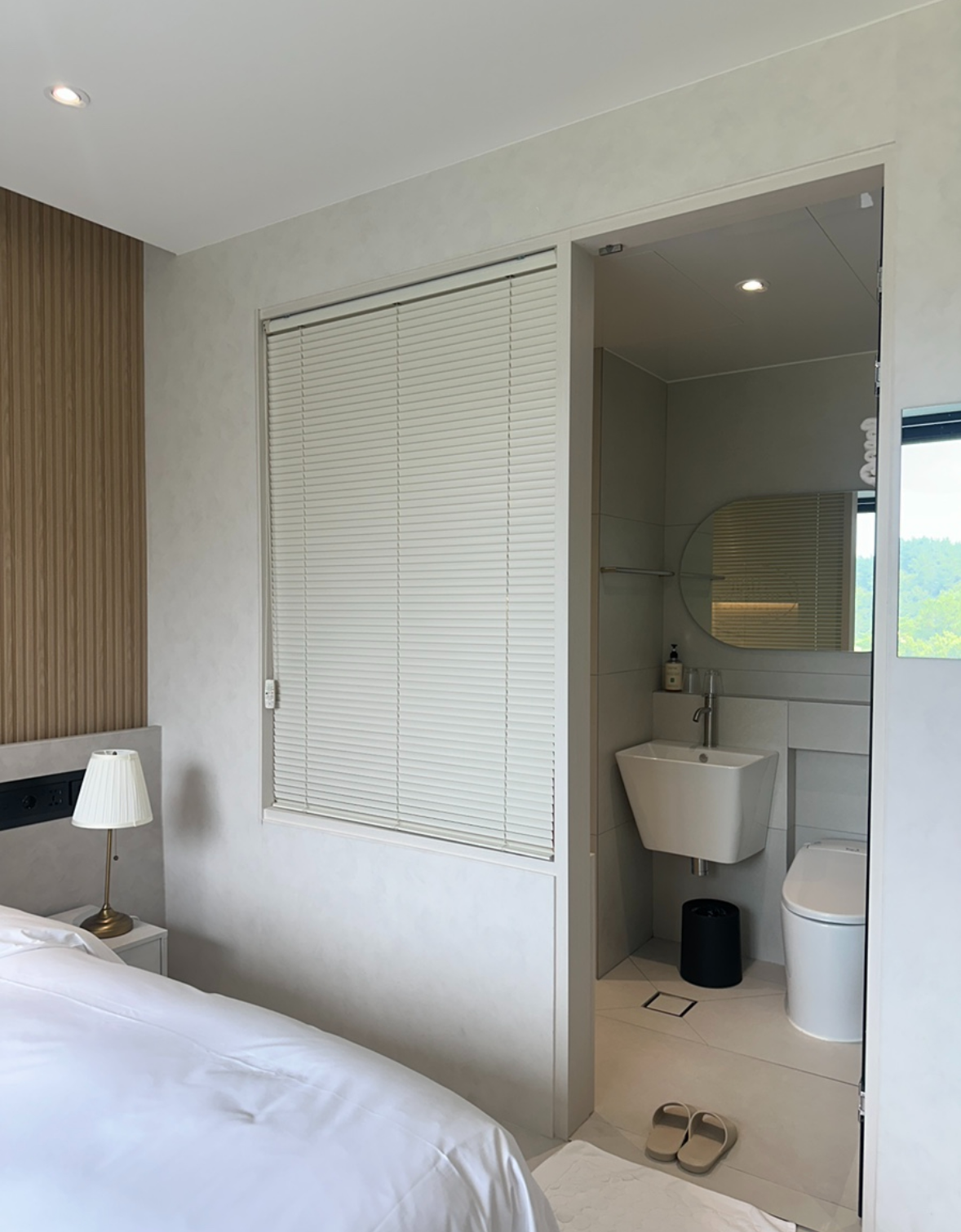 기능적인 공간 재배치만이 아니라, 건축적 요소가 감각적 경험을 어떻게 확장할 수 있는지를 고민했다. 입면의 루버가 빛과 그림자를 조율하며 리듬감을 부여하는 한편, 후면의 개방된 공간은 물리적 편의를 넘어 정서적 안정감을 제공하는 방식으로 설계되었다. 각각의 건축적 요소는 개별적으로 기능하는 것이 아니라, 투숙객이 공간을 경험하는 흐름 속에서 유기적으로 작동하도록 의도되었다.