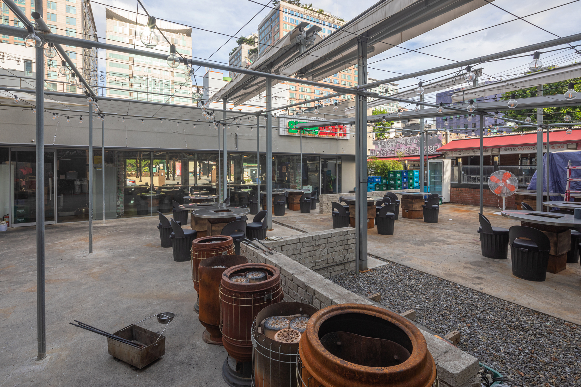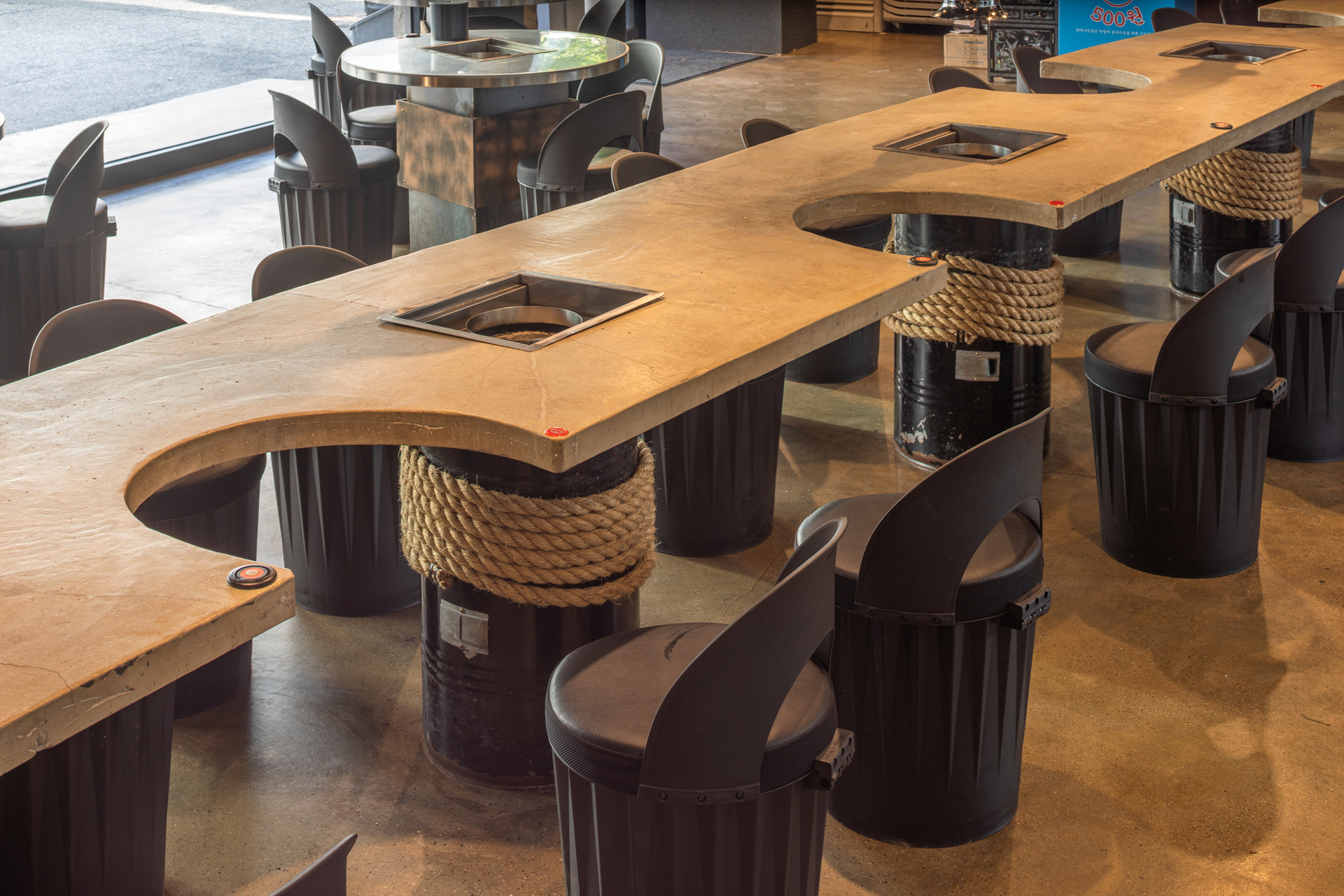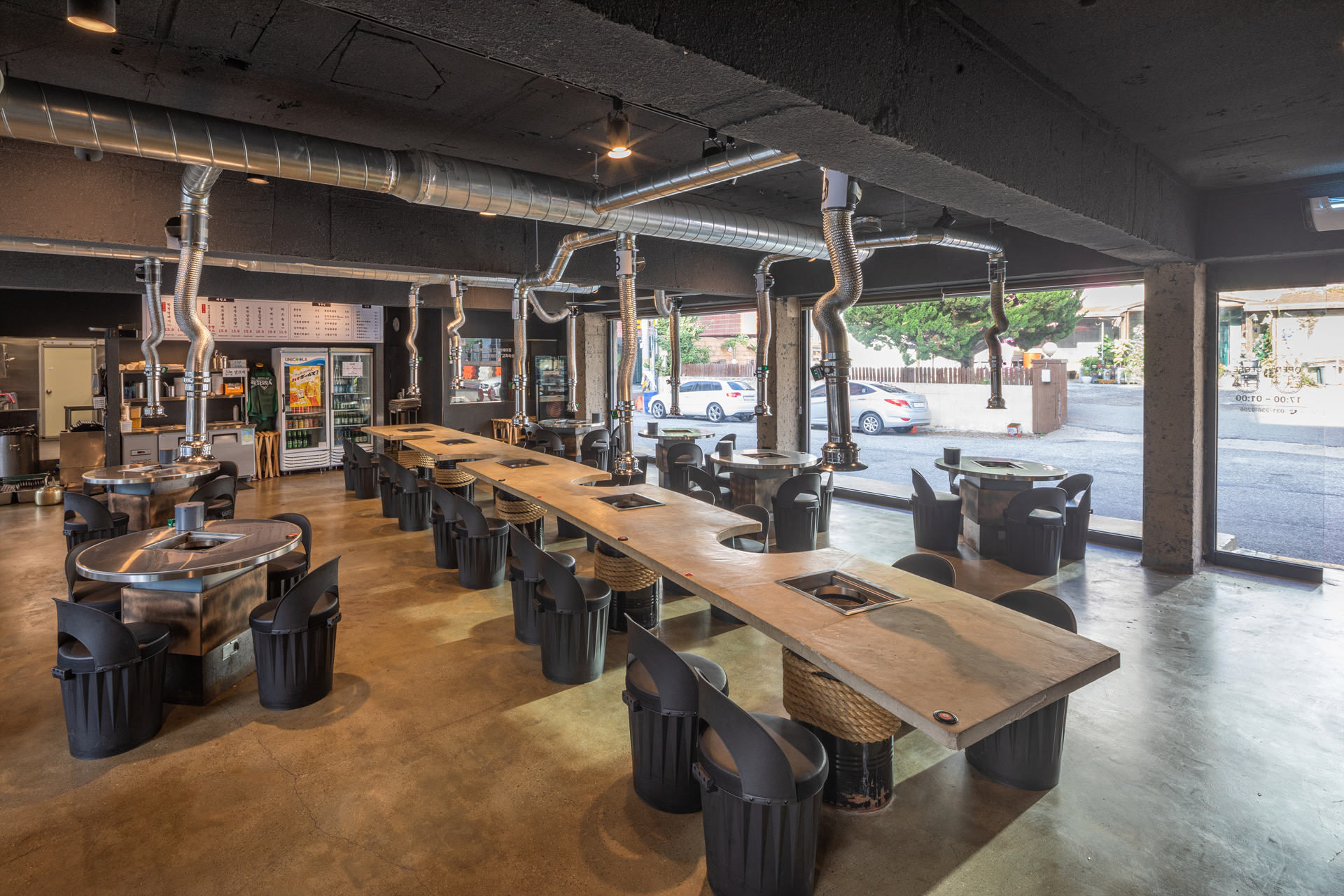 날것의 느낌 속에서 열정적인 식사 분위기를 끌어내기 위해 기존 건축물의 골조만 남긴채 모두 철거후 콘크리트와 금속을 위주로 거친 마감의 분위기를 만들었다. 전면의 주요 도로에서부터 식당 내부를 통해 안뜰까지 이어지는 동선을 만들었고 내외부의 유기적인 연결은 식사하는 손님들에게도 즐거운 풍경을 선사한다.