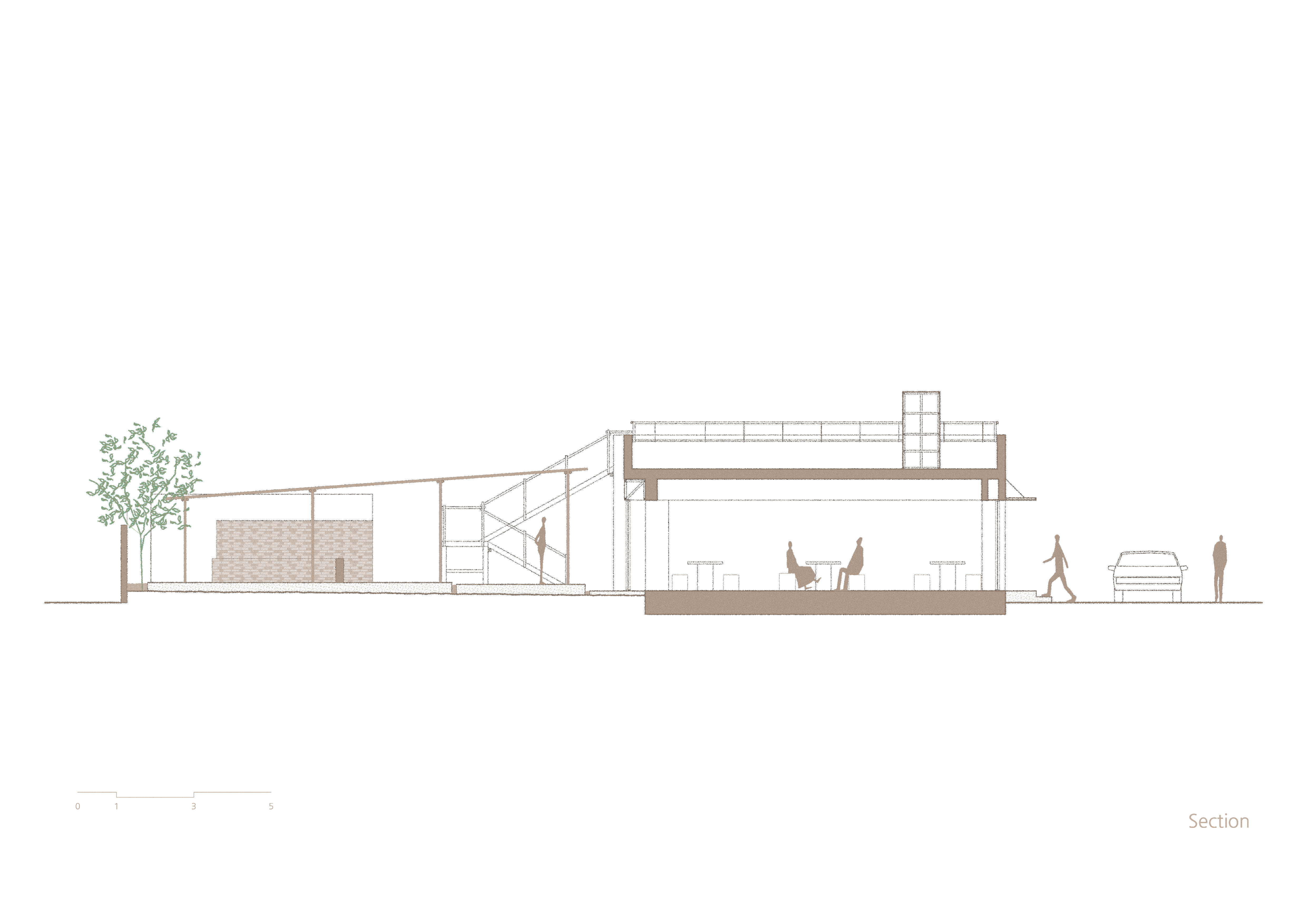 날것의 느낌 속에서 열정적인 식사 분위기를 끌어내기 위해 기존 건축물의 골조만 남긴채 모두 철거후 콘크리트와 금속을 위주로 거친 마감의 분위기를 만들었다. 전면의 주요 도로에서부터 식당 내부를 통해 안뜰까지 이어지는 동선을 만들었고 내외부의 유기적인 연결은 식사하는 손님들에게도 즐거운 풍경을 선사한다.