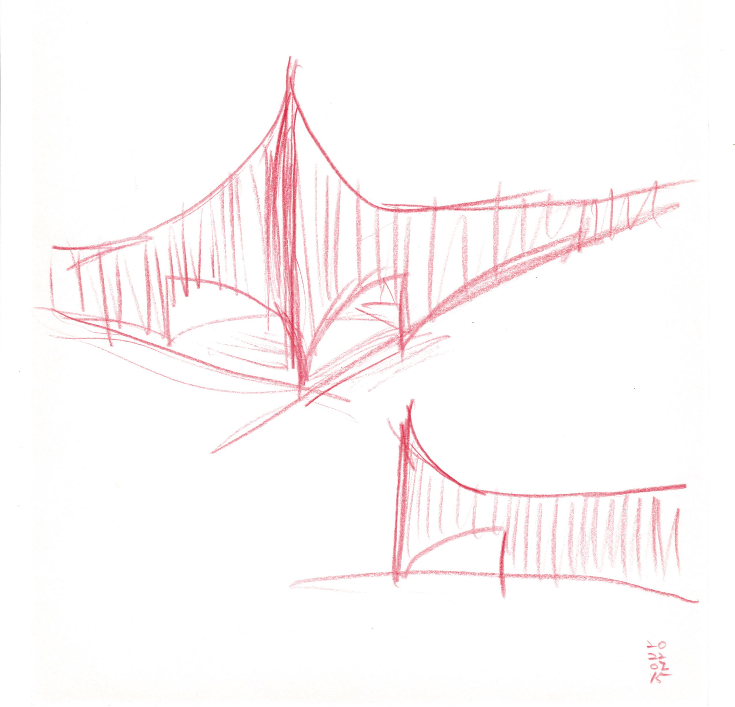 The main façade is located on the northeast roadside, so light and shadows enter the inner front yard only in the morning. A louver produced on the curved surface to add depth to the surface shows different shadows depending on the light and the natural scenery created with shadows of the plentiful pine trees escort people in their daily lives. In the yard of the pavilion, people can look up at the sky in between the structure and appreciate the light that shines upon them while restfully embracing the shade. The white wings will demonstrate a vivid presence and function as a new public landscape of the area.