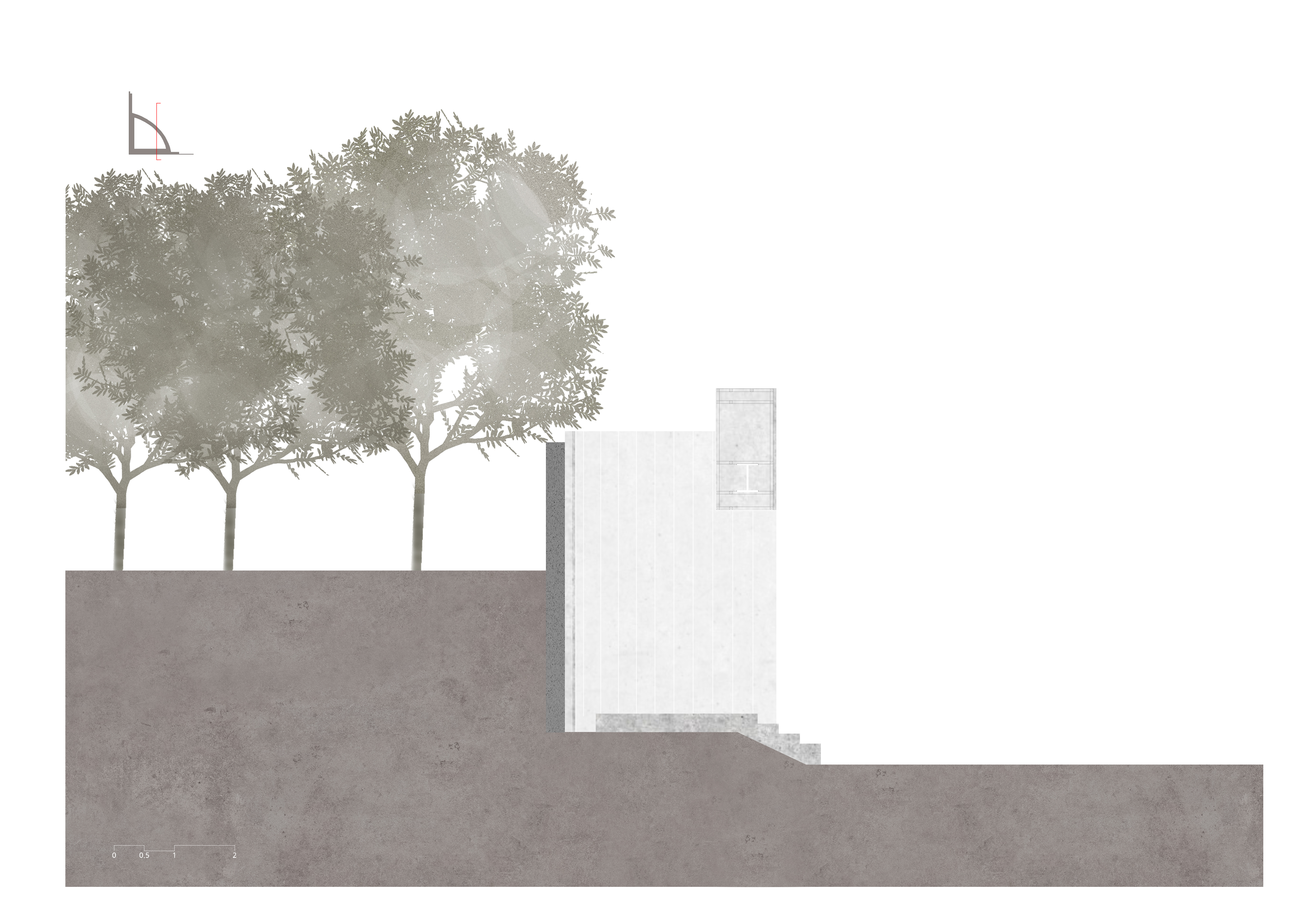 The main façade is located on the northeast roadside, so light and shadows enter the inner front yard only in the morning. A louver produced on the curved surface to add depth to the surface shows different shadows depending on the light and the natural scenery created with shadows of the plentiful pine trees escort people in their daily lives. In the yard of the pavilion, people can look up at the sky in between the structure and appreciate the light that shines upon them while restfully embracing the shade. The white wings will demonstrate a vivid presence and function as a new public landscape of the area.