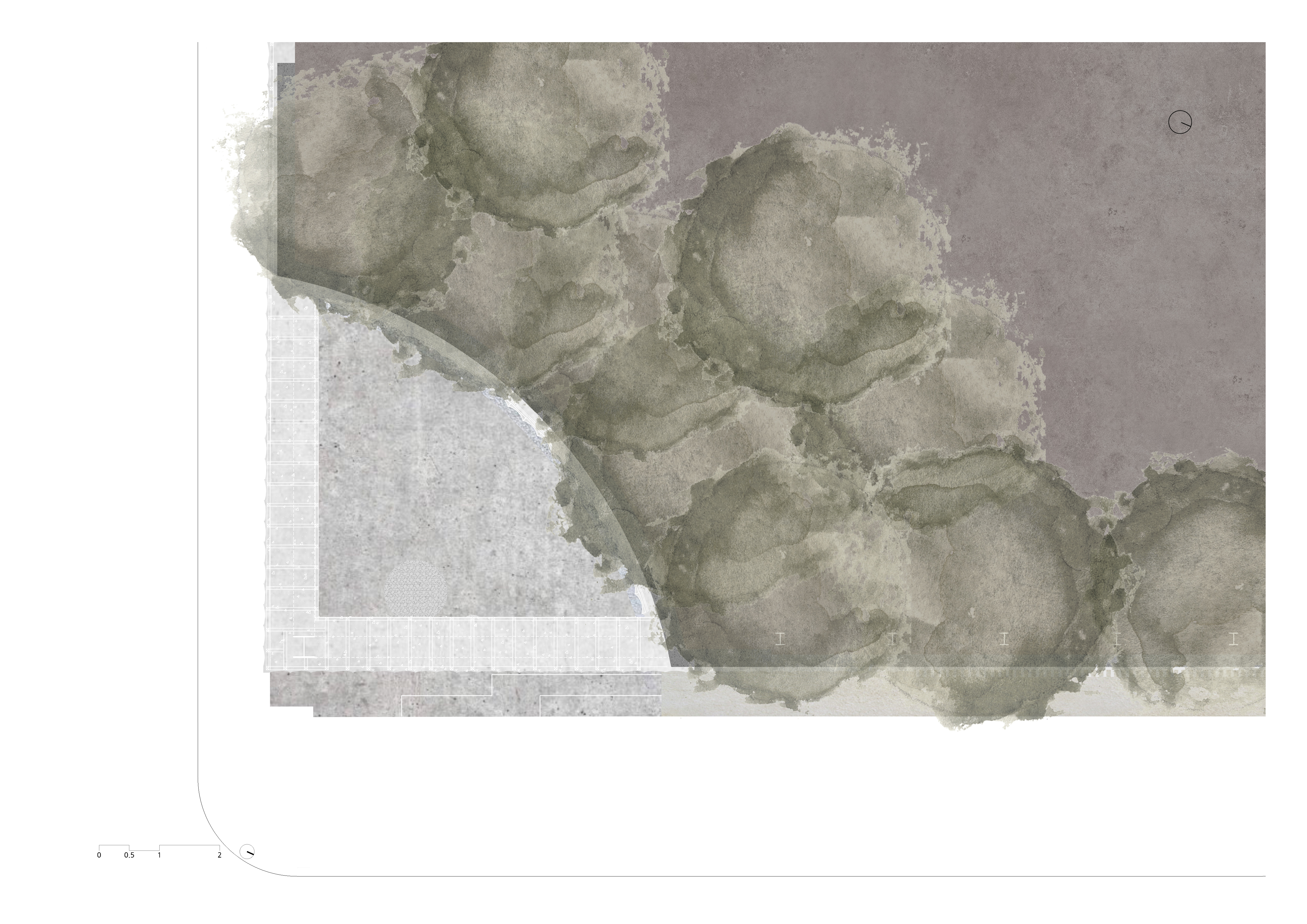 주요 파사드는 북동측 도로변에 있어 오전에만 빛과 그림자가 내부 마당으로 들어온다. 표면에 깊이를 더하기 위하여 제작된 곡면의 루버는 빛에 따라 음영이 달라지고, 풍성하게 자라난 소나무의 그림자들이 담기며 만들어지는 자연스러운 풍경은 사람들의 일상과 함께 한다. 파빌리온 내 마당에서는 구조물 사이로 하늘을 바라보며 그늘을 편안하게 감싸 안고 내려오는 빛을 감상할 수 있다. 하얀 날개는 뚜렷한 존재감을 가지는 동시에 이곳에 새로운 공공의 풍경이 될 것이다.