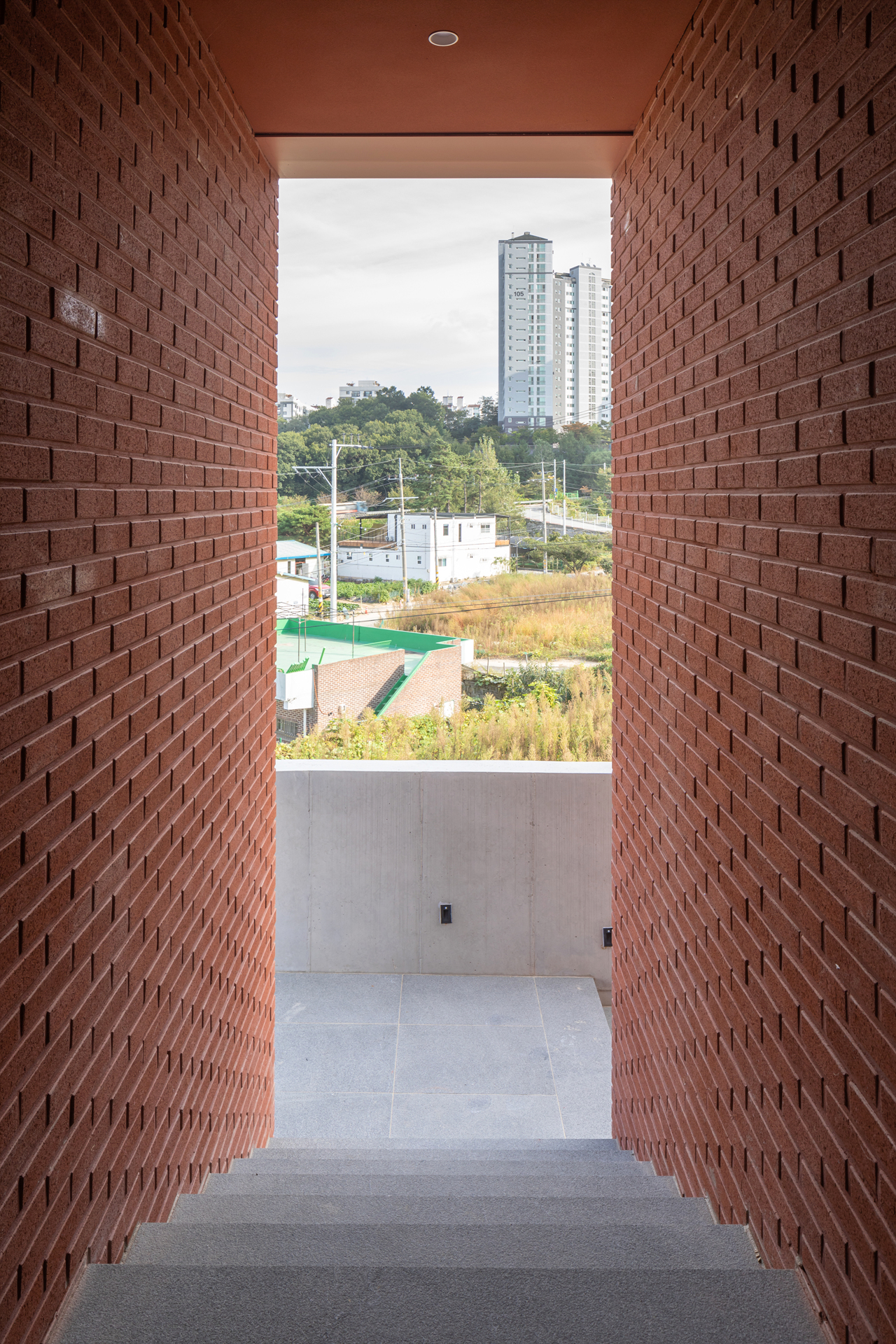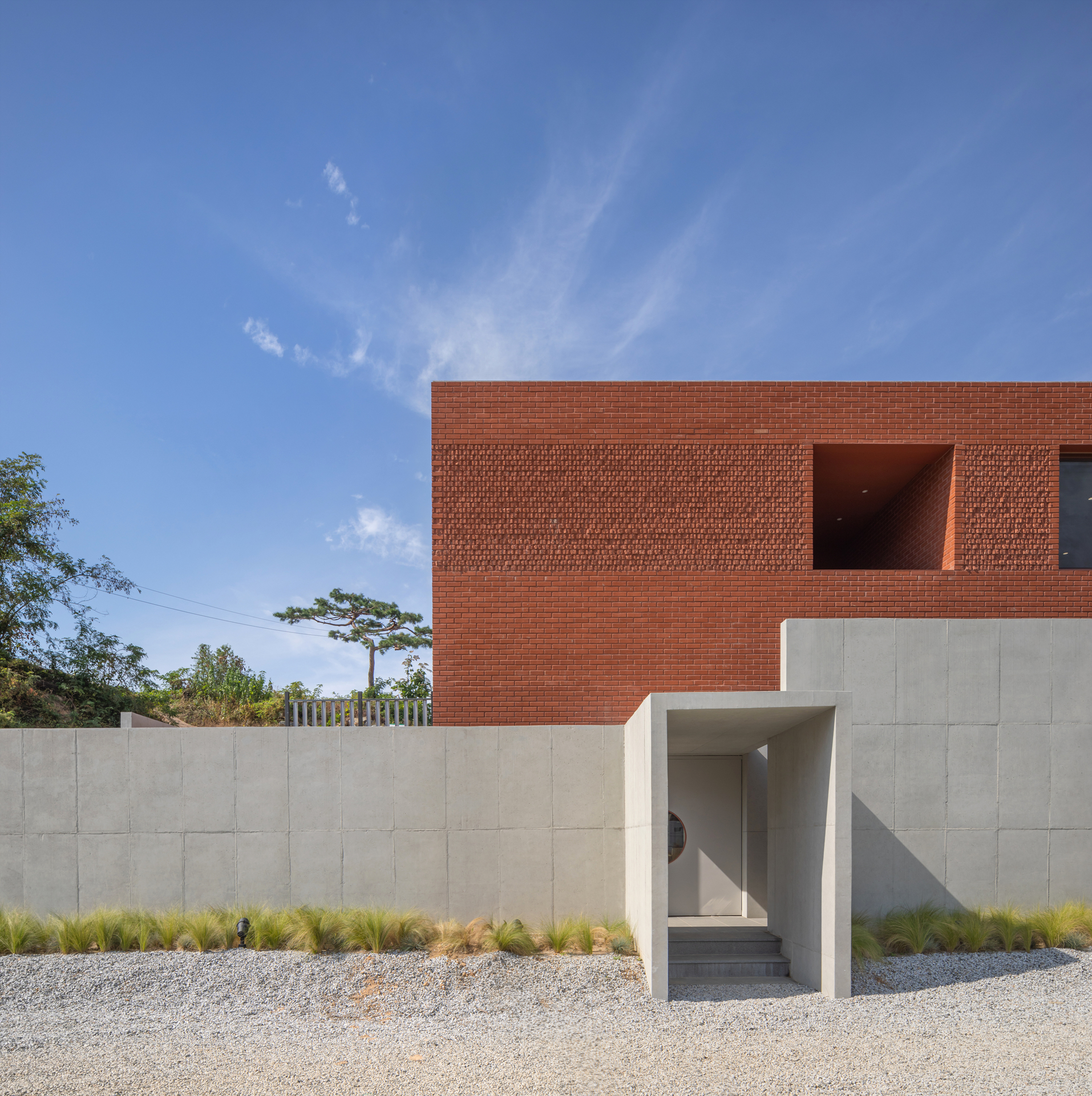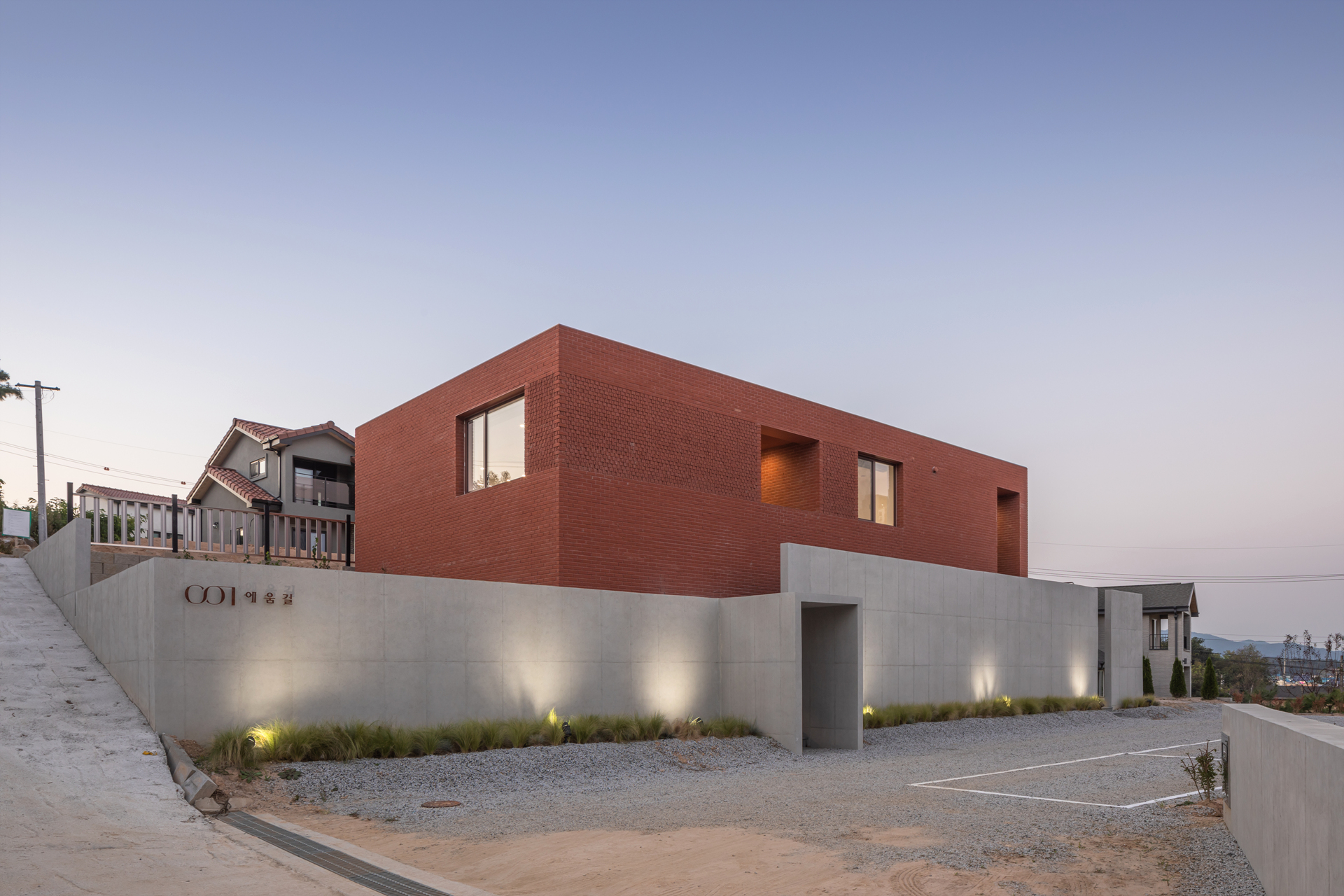 경기도 이천시 원도심 외곽, 농가 마을과 대규모 주택단지가 뒤섞인 풍경은 현대 한국 교외 지역이 마주한 난개발의 전형을 여실히 보여준다. 이 혼돈의 한복판에 놓인 대지를 마주하며 드로잉웍스의 김영배는 역설적으로 ‘닫힘을 통한 열림’이라는 건축적 해법을 제안한다. 주변의 급격한 변화를 예측할 수 없는 상황에서 외부 환경에 순응하기보다 내부로 응축된 풍경을 만드는 방식을 택한 것이다. 이는 마치 소란스러운 도시적 소음으로부터 거주자의 삶을 보호하기 위해 세워진 정교한 보루와도 같다.