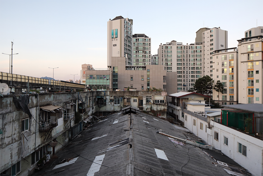 오래된 건축물을 실측한다는 것은 그곳에 살았던, 그리고 여전히 그곳에서 현재를 살아가고 있는 사람들의 삶의 흔적을 더듬어 그 곳에 새겨진 결 하나하나를 천천히 읽어나가는 작업이다. 하지만 각기 다른 모습과 크기를 하고 있는 현관과 창문들을 비롯하여, 닳고 닳은 계단난간들과 예상치 못한 곳에서 발견되는 무수한 삶의 흔적들은 우리가 상상만으로 따라가기엔 조금은 역부족이었다. 재래시장의 현대화와 공동주택에 대한 기대심리의 산물이었을 초창기 상가아파트. 전통거주방식에서 난방연료의 변화로 인해 나타나는 과도기적 거주모습의 흔적들. 처음 기대와는 달리 경기불황과 상권의 약화 속에서 영욕의 세월을 견디고 살아온 삶의 모습들. 그리고 현재 재개발을 갈망하는 사람들과 지금의 모습을 지속하려는 사람들. 실측작업을 하는 동안 만난 서로 다른 공간과 상황, 입장들의 공존은 자연스레 ‘헤테로토피아’를 떠올리게 하였다. 희미해져버린 흔적들을 되짚으며, 처음 만들어졌을 때의 모습과, 살면서 불편한 부분들을 조금씩 고쳐 만들었을 삶의 지혜들을 유추하면서, 부족하지만 건축이라는 시선을 통해 새석관시장을 담아보고자 노력하였다.