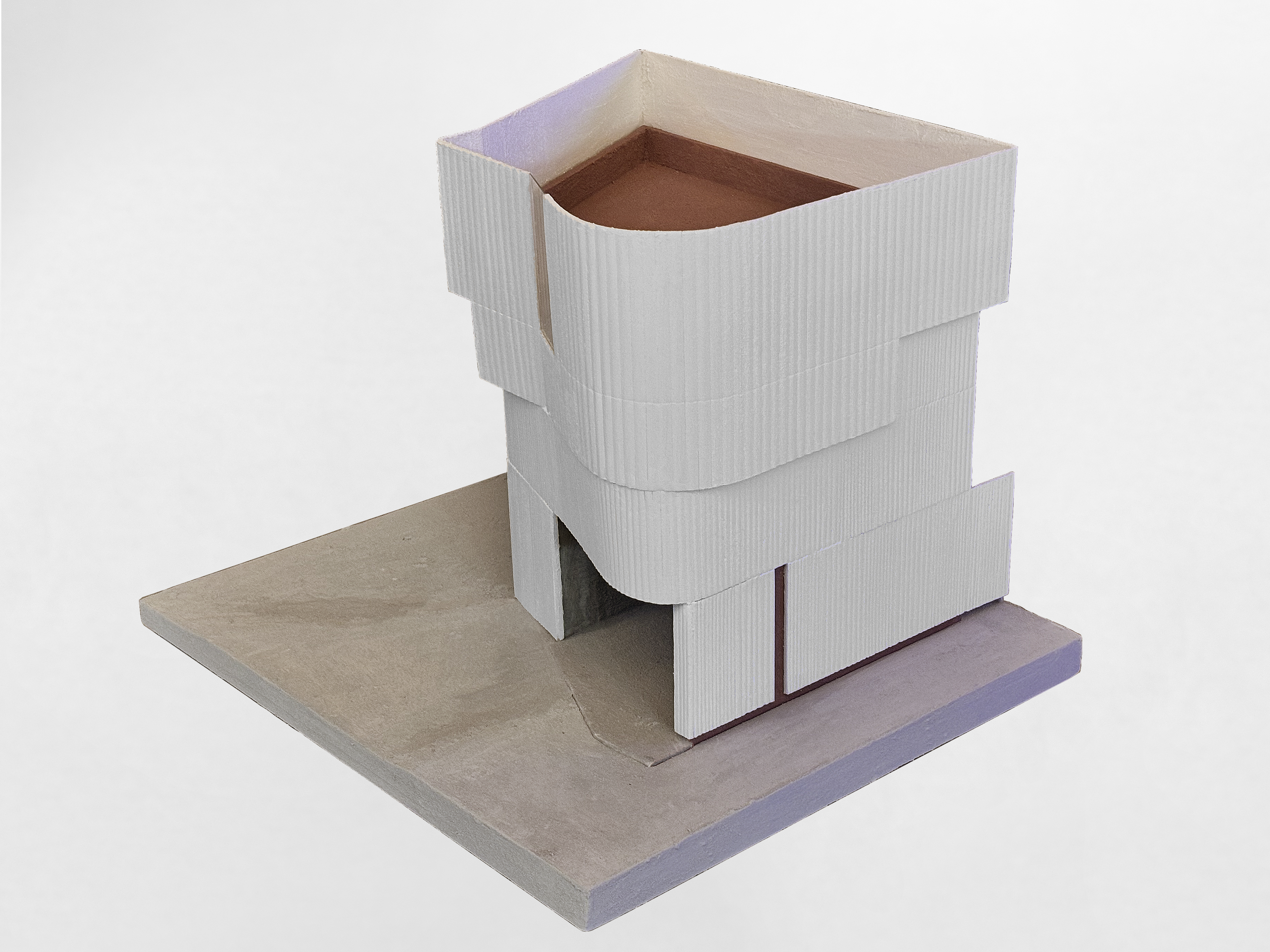 건축물은 삼거리 모퉁이에 위치한 점을 활용하여, 세 방향에서 모두 드러나는 구조로 계획되었다. 이를 통해 골목길에서 상징적 역할을 하면서도, 구도심의 풍경에 자연스럽게 녹아들도록 했다. 과도한 장식이나 화려한 외관보다는 재료의 질감과 형태의 흐름을 통해 도시 경관에 부드럽게 스며드는 방식을 택했다.