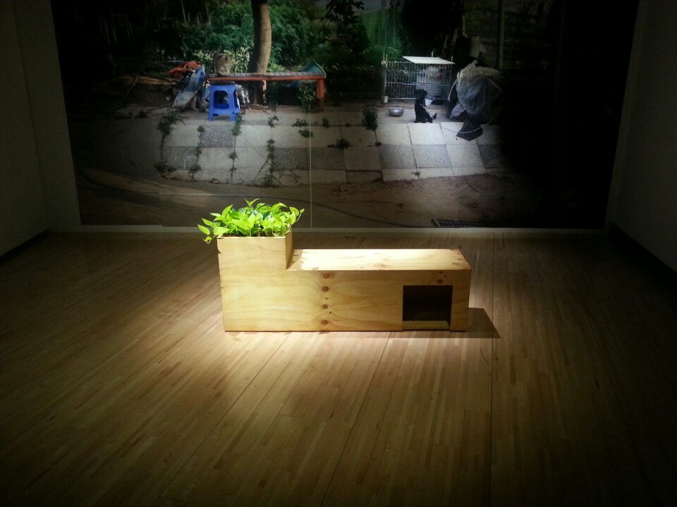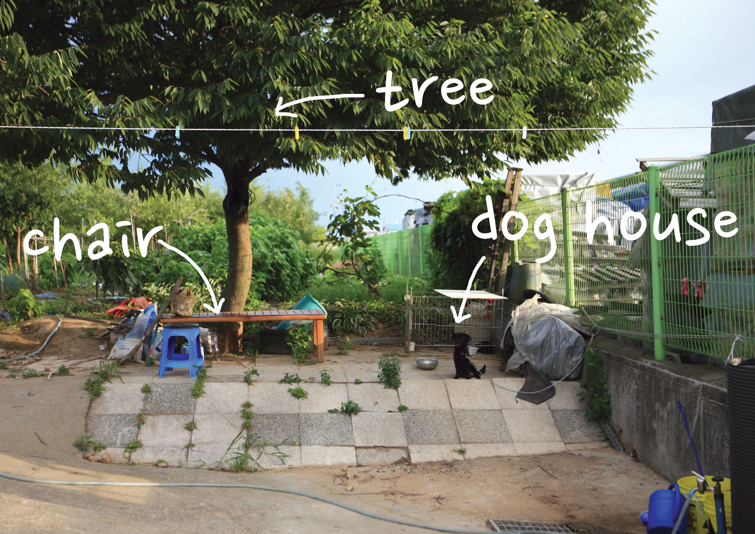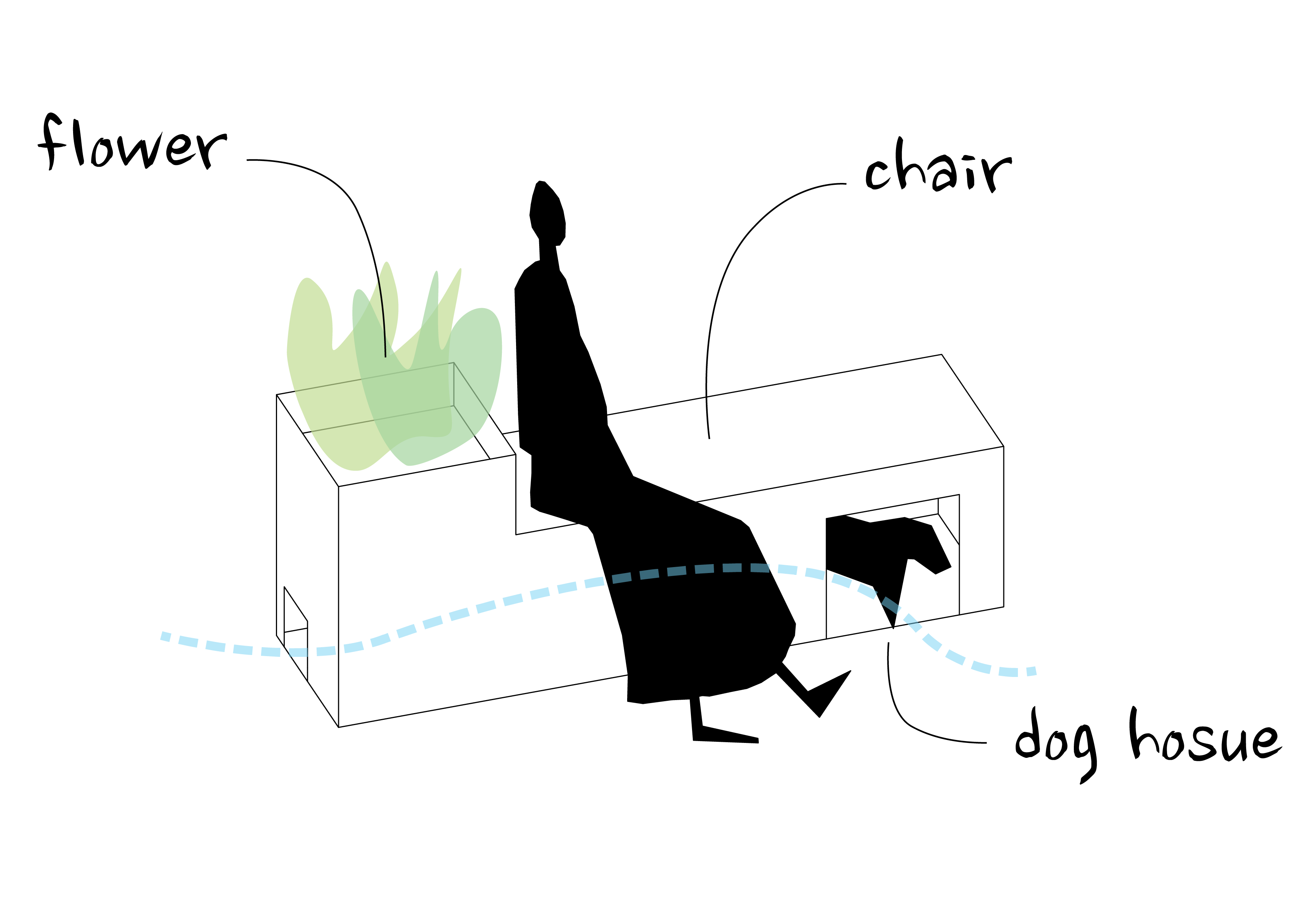 바우하우스'는 예술가의 전시 기획으로 건축가와 협업을 통해 실제 설치가 될 곳을 바탕으로 계획되었다. 예술가는 개의 의인화가 아닌 개의 시점에서라는 질문을 하였고, 건축가는 실제 환경으로부터 그 기능을 유추하여 계획하였다. 우리는 계획을 위해 개의 성향중 사람을 좋아하며 곁에 있고 싶어하는데 주목하였다. 그리하여 개집이 설치될 장소에 있던 의자를 대신해 개집과 의자가 융합되는 방식을 통해 개와 사람이 함께 있을 수 있도록 계획했다. '바우하우스'의 의자 높이는 사람들이 앉아 쉬기에 적당하면서 개가 들어가기에도 적당한 규격을 택해 사람과 개가 함께 할 수 있도록 하였다. '바우하우스'는 실제 설치될 곳에 있는 개집을 대체하지만 기존 의자의 기능이 부가되었으며 뒤편의 나무는 작은 화분으로 함께하며 상징적인 제품을 완성하였다.