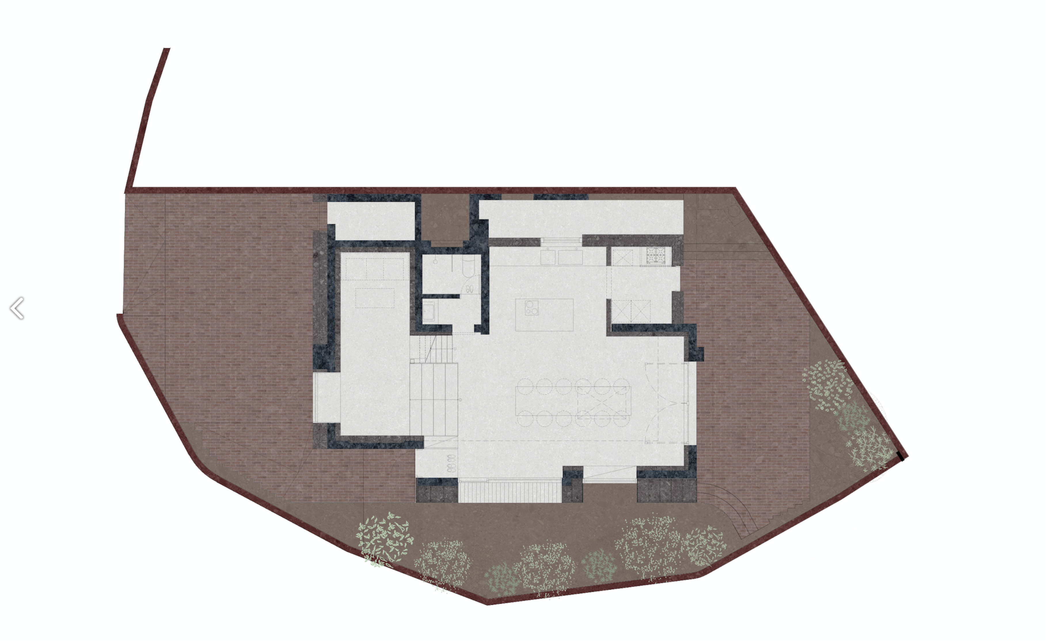 계획을 하기에 앞서 의뢰인은 진입 마당과 입면을 이탈리아 아씨시의 감성을 담아달라는 요청이 있었다. 몇 년전 의뢰인이 다녀온 이탈리아의 소도시 아씨시는 순례 성지를 하기 위해 세계인들이 찾는 곳으로 프란치스코 성당이 있는 곳이기도 하다. 이 곳의 건축은 붉은 석재를 쌓아 건물을 짓고 도시를 만들었다. 60년이 지난 시점에 성북동 주택을 리모델링하면서 기존 재료와 새로운 재료가 만나는 지점을 항상 고민하게 된다. 건축의 주요 재료와 입면 디자인은 두가지 관점으로 계획했다.
