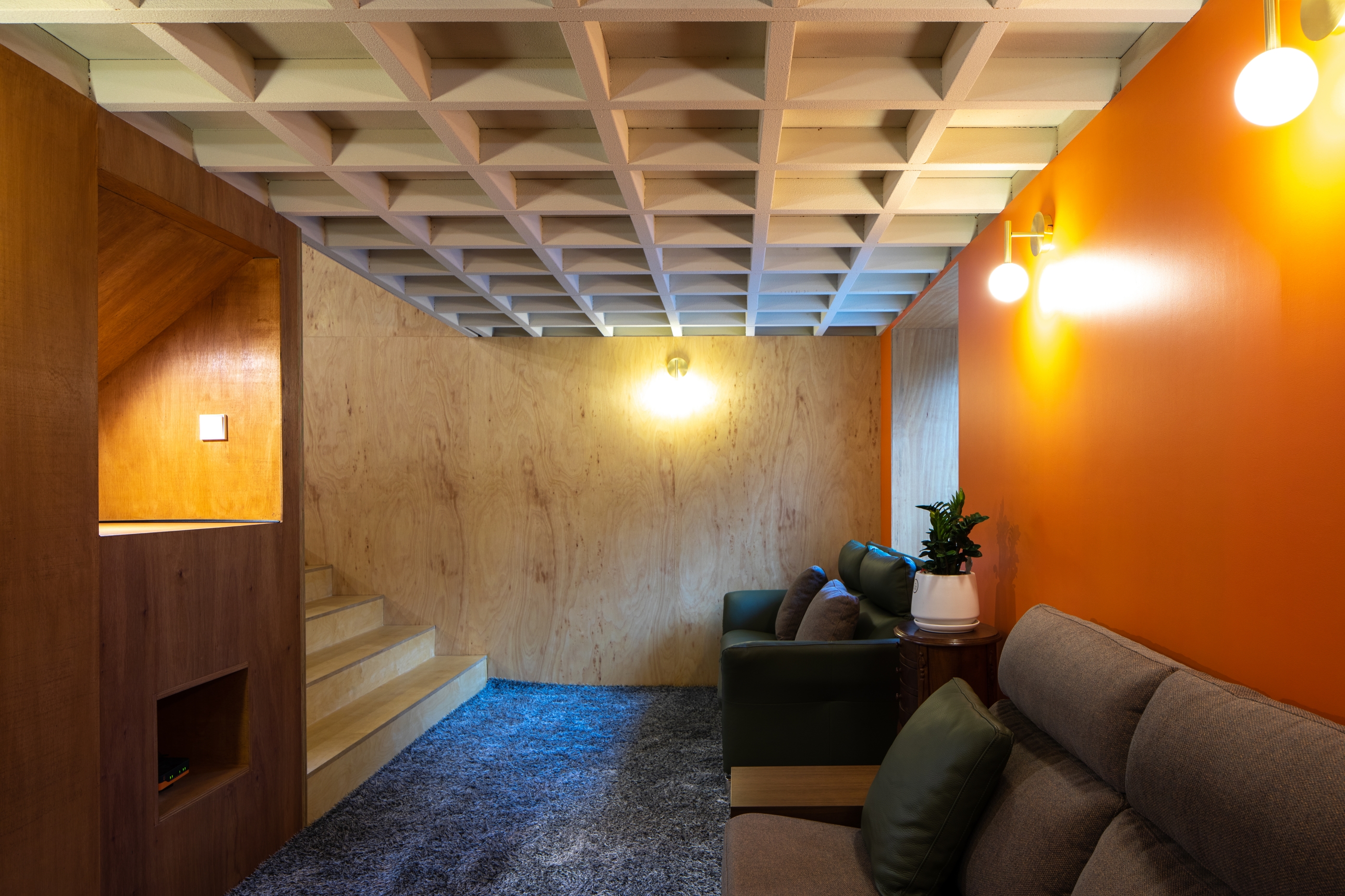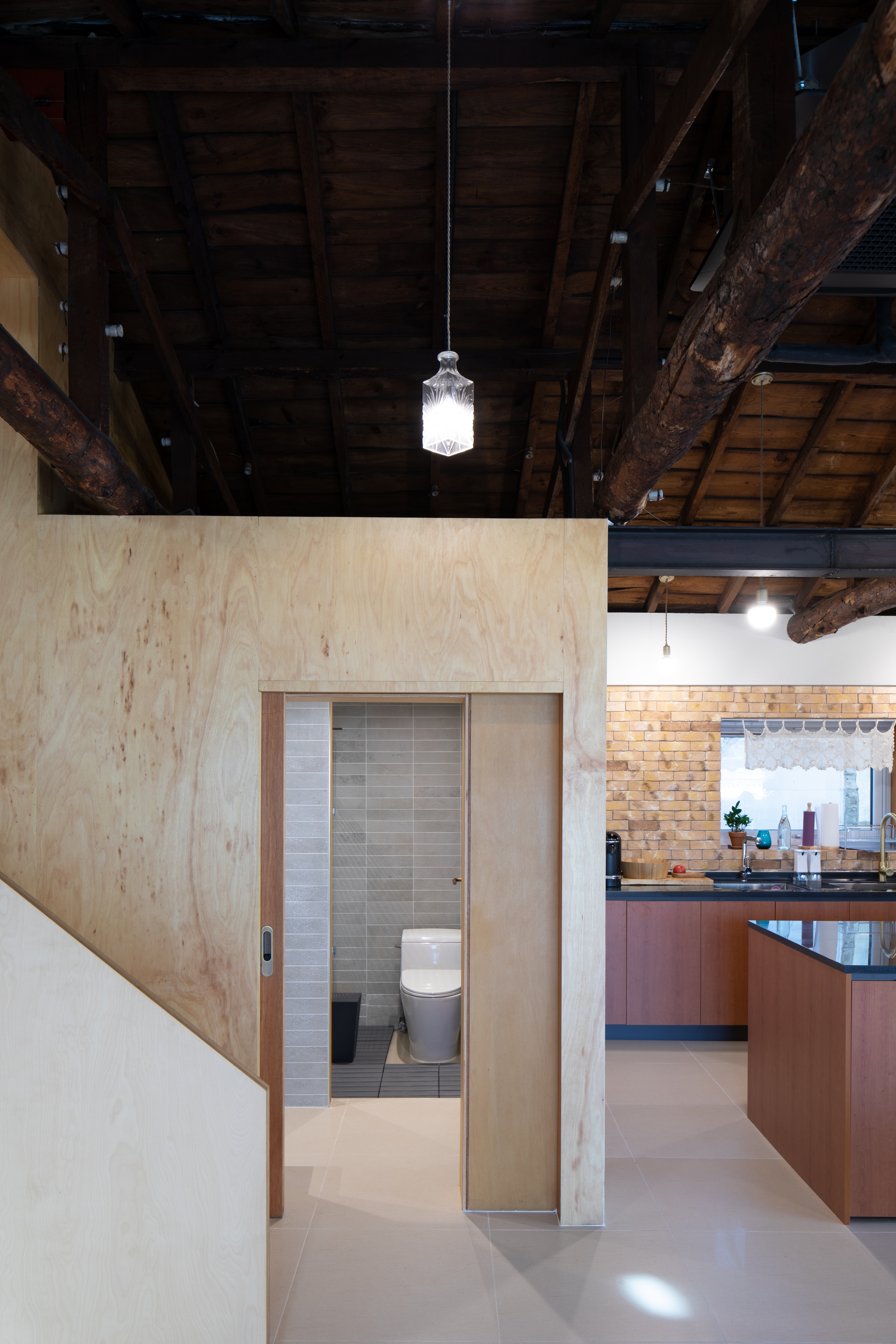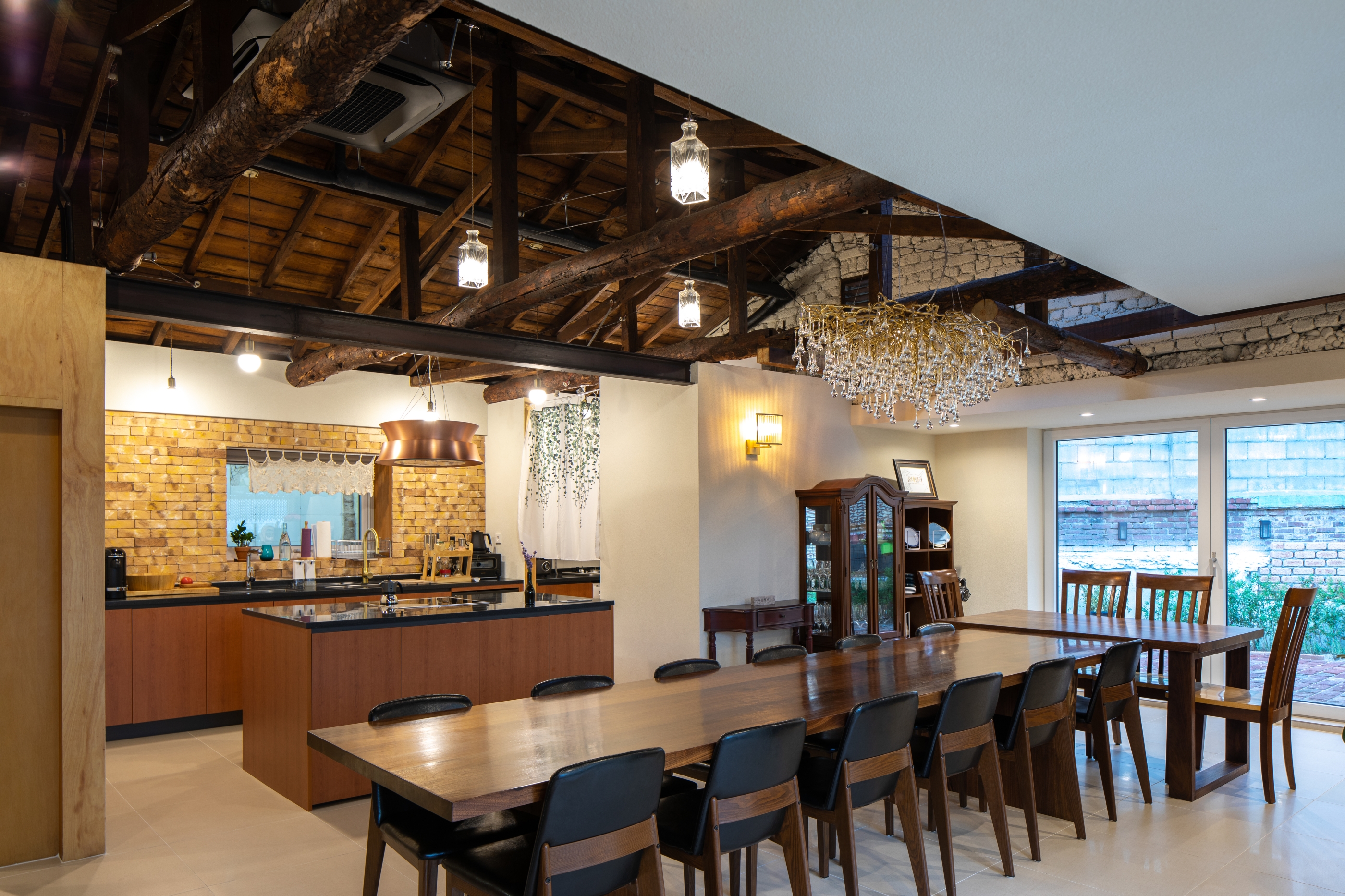 This house was a cottage in 1960 but then turned into a house and then a photo studio and flower shop. By 2020, the purpose was changed into a shared kitchen for all. Since it is used as a shared kitchen, the gate of the yard and walls were partly demolished with the plan to secure an alley that can fit two cars and a shared yard connected to the alley. All the spaces that used to be rooms in a teahouse were all demolished and supplemented to secure the kitchen and the living room as much as possible, and designed a living room and also a room with a skip floor structure within a single space. To emphasize the properties of a shared kitchen, a wall type sink and island sink were designed and connected to a long table in the central living room. In Seongbuk-dong, Seoul, this house was built as an assembly of complex time and space styles with a Japanese ceiling structure, a facade that partially adopted the Italian Assisi sentiment, and a cedar shake that resembles the traditional wood shingle roof in South Korea.