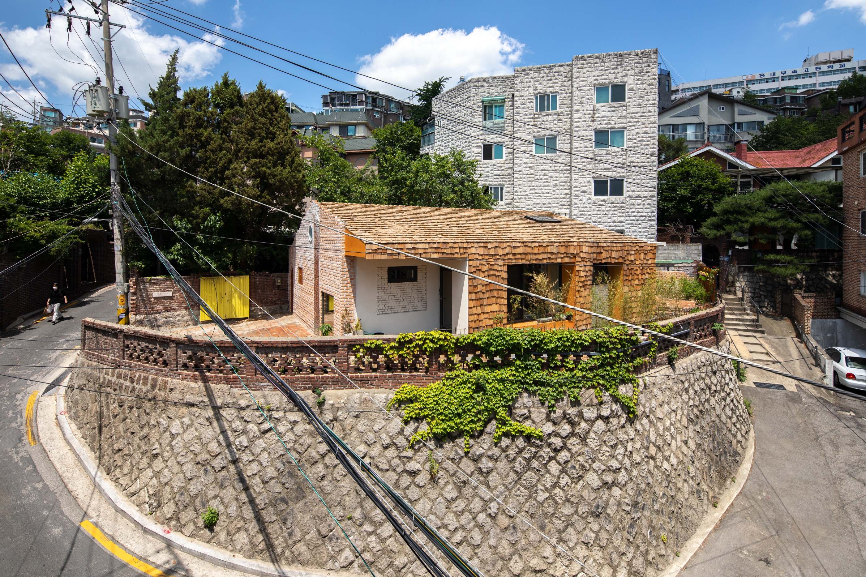 Seongbuk-dong is a village located in the east outside the Fortress Wall of Seoul and designated as a scenic area back when the nation restored independence and many cottages were built all over the area. This remodeled house also used to be used as a cottage, so it is located on a hill and back then, there was a Hanok village under this house and the visibility is opened to the point where the east of the Fortress Wall of Seoul on the other side stands out at one view. This house was built in 1960, and the difference in elevation of more than 4m height from the slope was supplemented with stonework to construct the stylobate, and it was a white house with brick rails and masonry. The client had a strong affection for this house and the village in Seongbuk-dong, and was planning to tear it down to build it again. However, the client wanted to build a space to join other village people and make this house and Seongbuk-dong to the public and planned a shared kitchen.