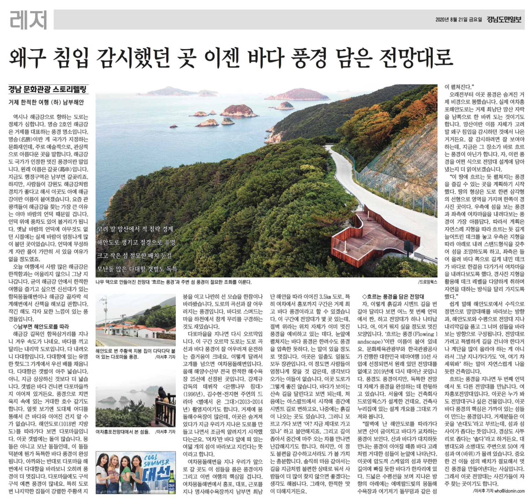 2019년에 완공한 거제 전망대 '흐르는 풍경'이 경남도청에서 기획한 ‘경남건축여행’이라는 서적과 웹사이트에 소개되었습니다.