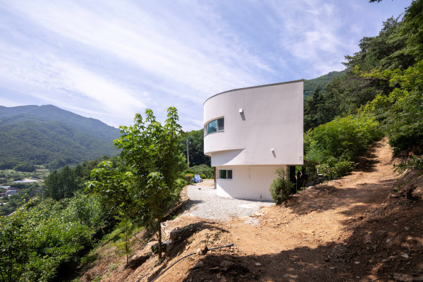 [땅집고] 충북 영동군 상촌면에 자리 잡은 천마산. 산 진입도로에서 60m 정도 오르면 지상 2층 규모의 농가주택 '한 사람을 위한 집'이 있다. 이 집은 대지 670㎡에 자리 잡은 연면적 59㎡ 규모의 주택으로 2019년 7월 준공했다.