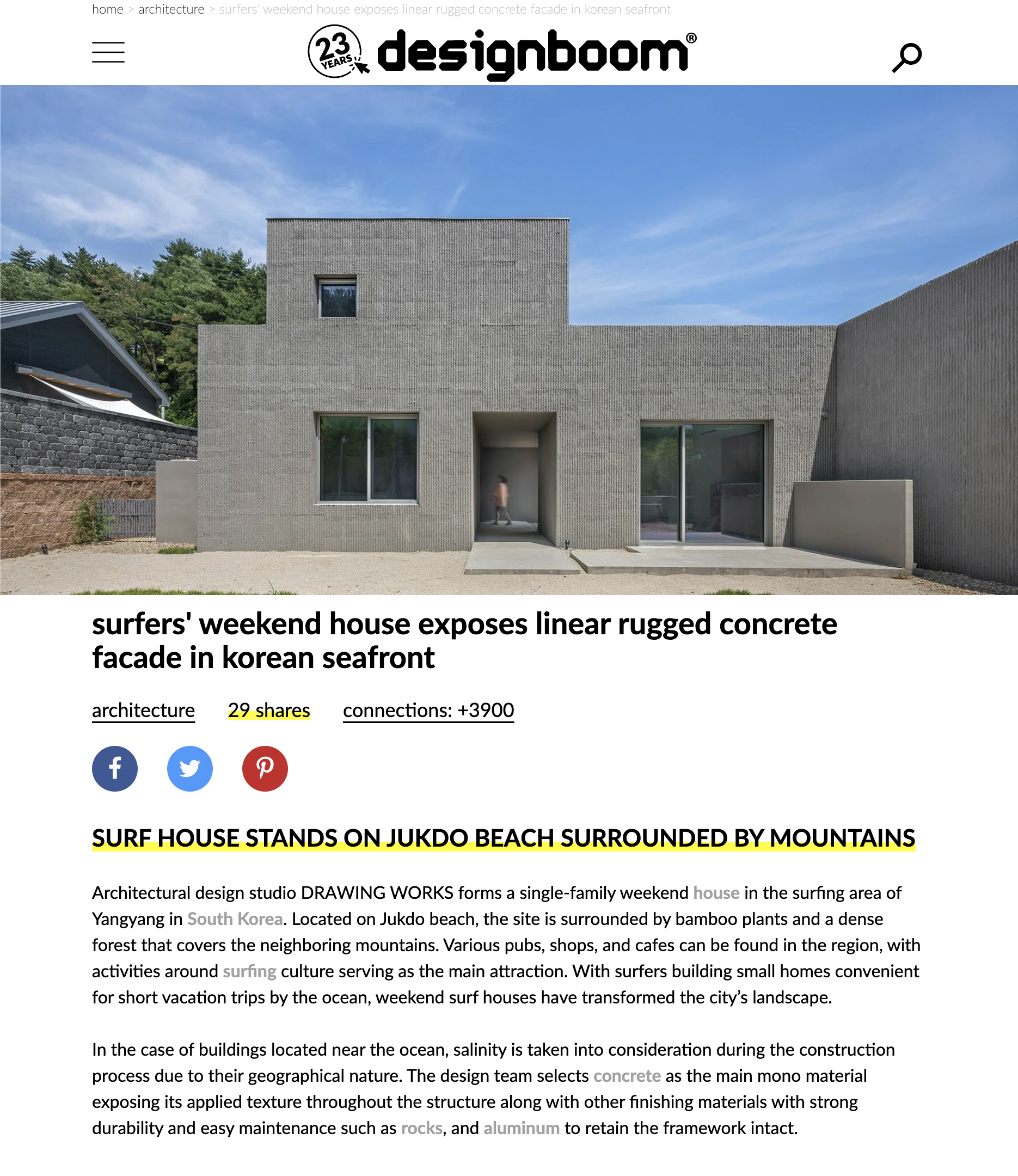 양양 서프하우스(Surf House)가 해외 건축웹진 archdaily와 designboom에 소개되었습니다.
