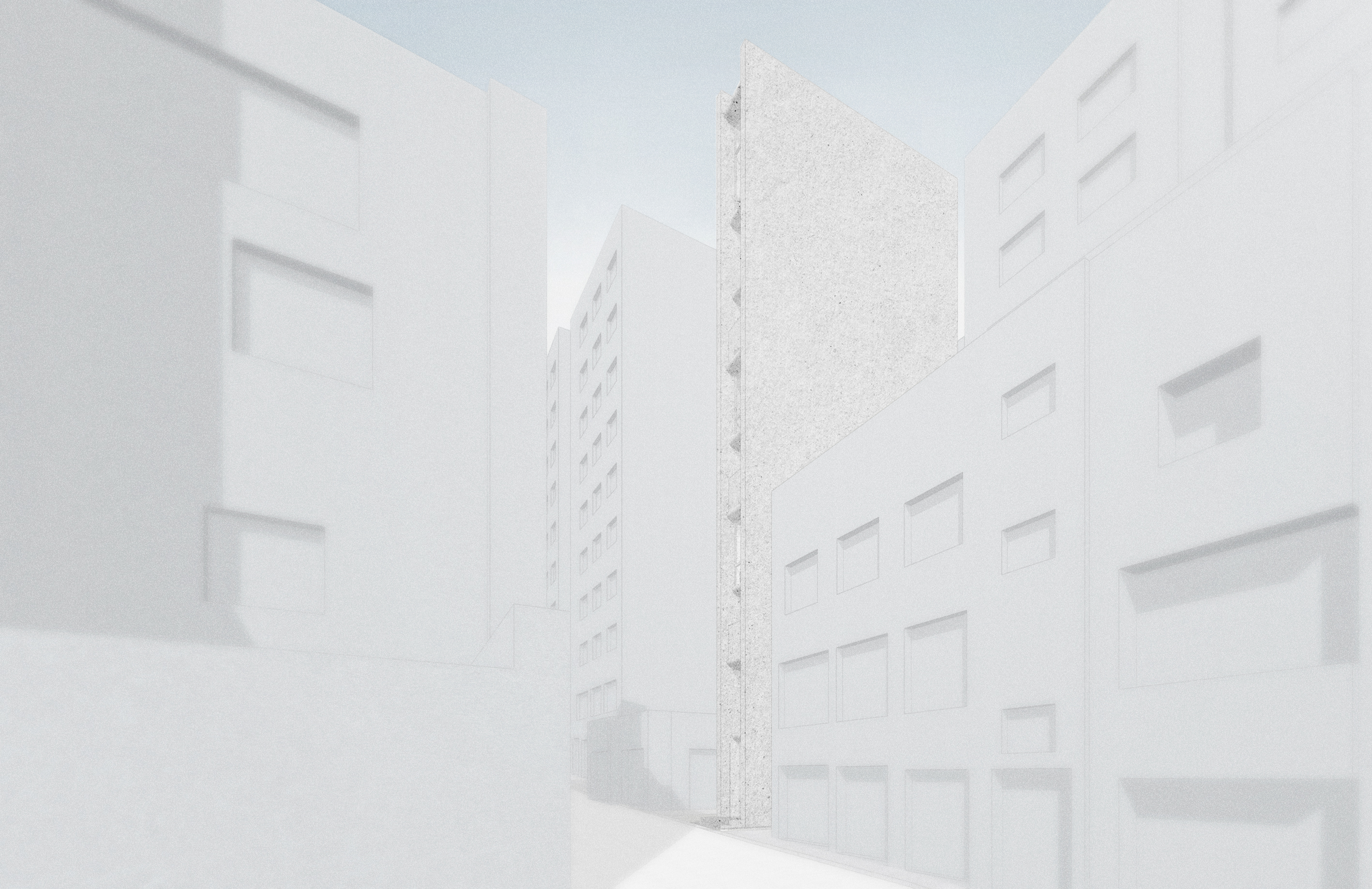 폭 2.2m 길이 9m의 공간에 안쪽에는 4인승 엘레베이터가 있다. 이 공간은 상업지역의 용적률을 최대한 활용하기 위해 높이 25m, 지하1층 지상9층으로 지어진다. 6m 폭의 좁은 길에서 고개를 들어올려 봐야 그 끝을 볼 수 있을 정도이니, 사람 의 존재가 약하게 느껴질 정도이다. 자연은 인간에게 풍요와 안식을 주기도하지만 깊고 빼곡한 숲속에서 느끼는 고독과 높은 절벽이 주는 경외 심, 세찬 바람과 거센 흔들림은 공포감을 주기도 한다. 위대한 자연으로부터 경이로움을 느끼듯 이 땅에 빌딩숲 사이의 틈에 세워진 벽체 사이 틈은 공간이 되어 그 스케일에서부터 압도적인 분위기를 전한다. 도시의 틈은 유휴지로 남을 수 있었으나 주변 빌딩숲의 반열에 올라 공간, 빛, 구조체의 원초적인 본질을 탐닉하게 한다.